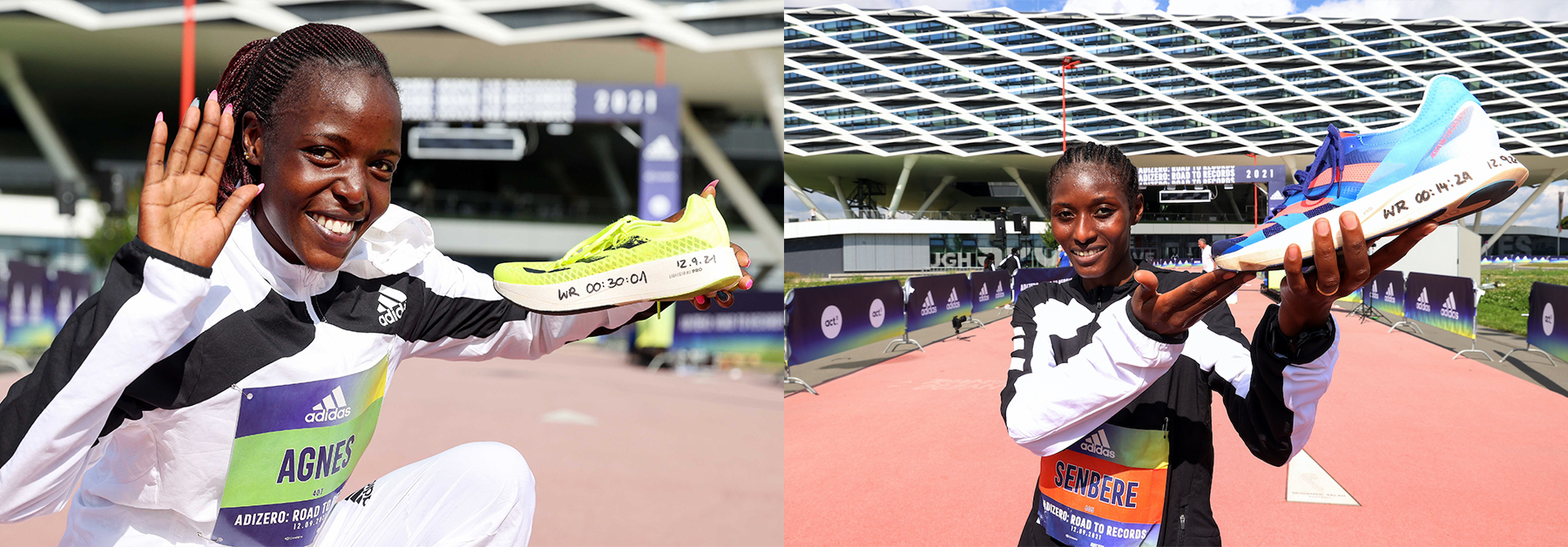 Agnes Tirop(右)創下純女子10K 世界紀錄;Senbere Teferi (右)則是創下 5K 世界紀錄。圖/adidas