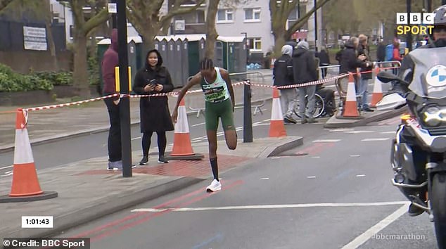 Megertu 率先發難進攻,Hassan、Jepchirchir 馬上做出反應跟了上去,三人並排前進,都在等待觀望;而上屆倫敦馬冠軍 Yehualaw 卻已經無力招架掉出隊伍中與頒獎台漸行漸遠。