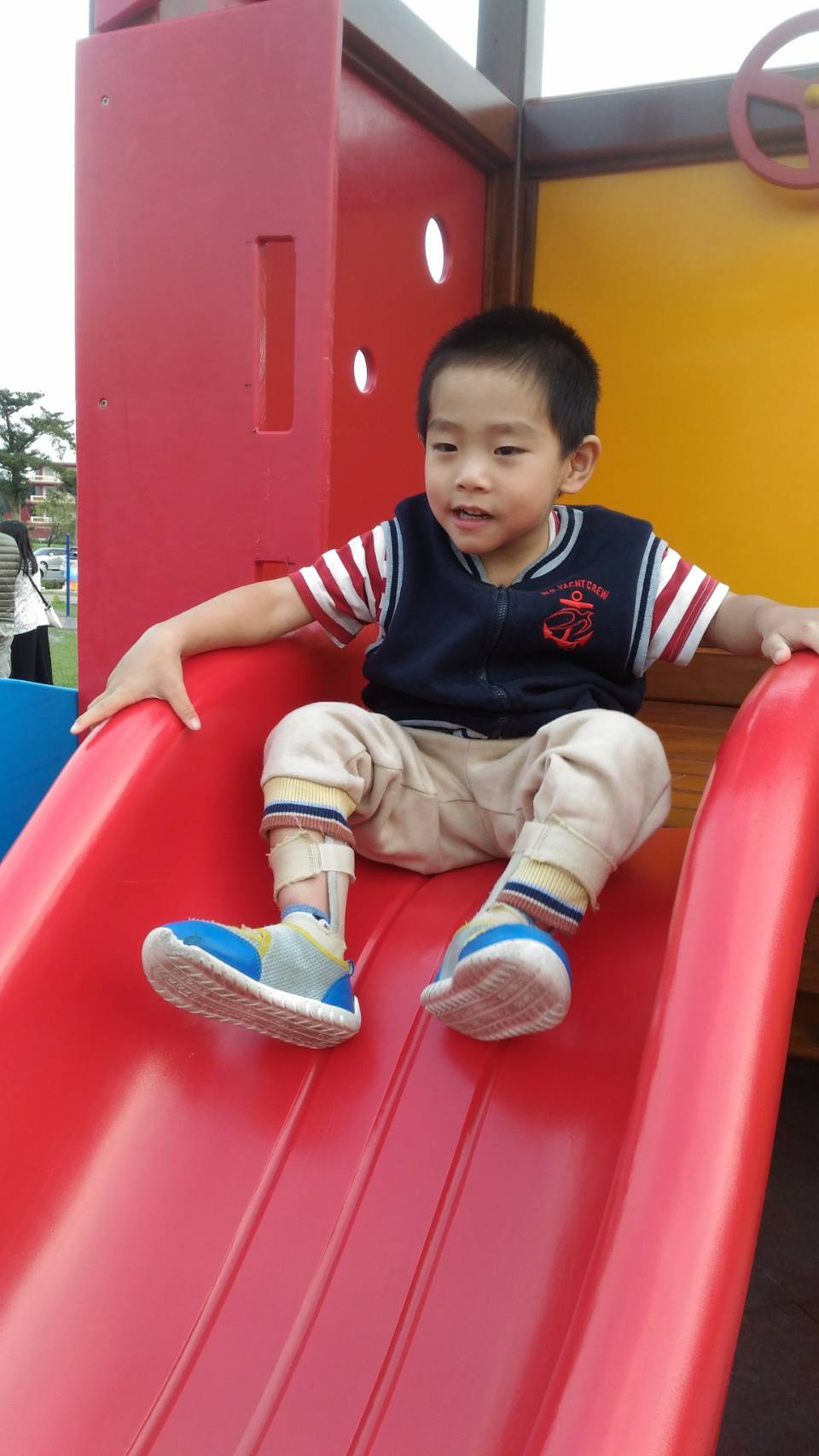 對於泉泉來說,能夠順暢的自行溜滑梯是很大的進步!