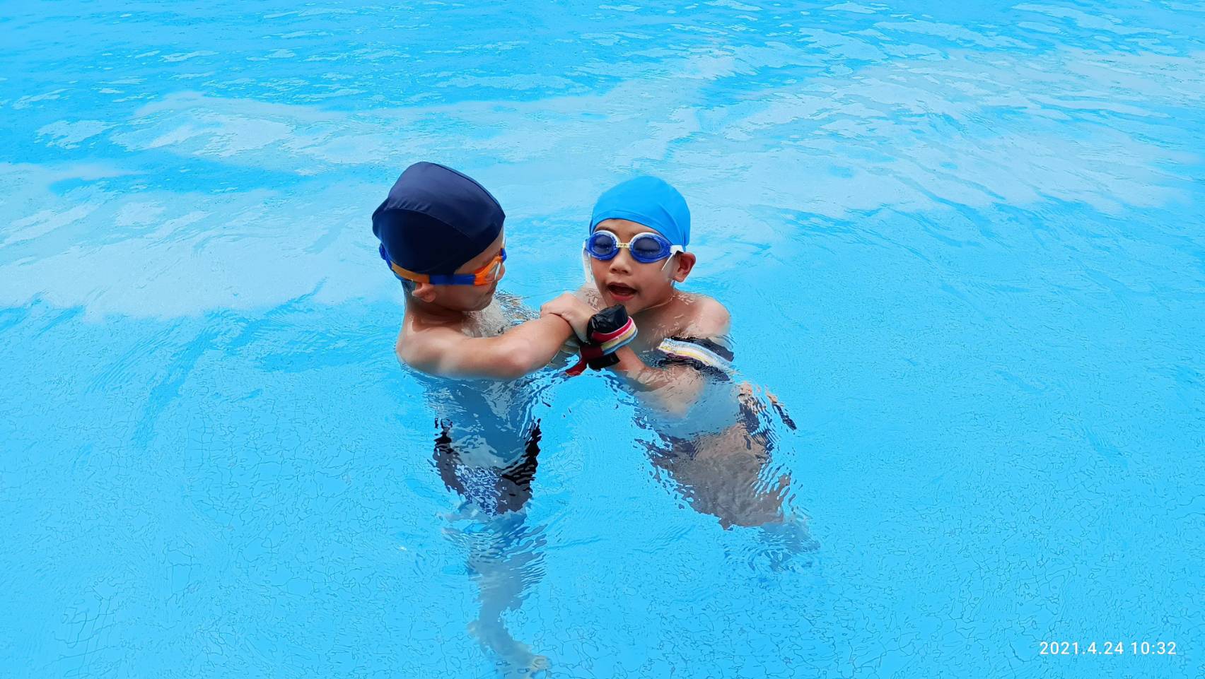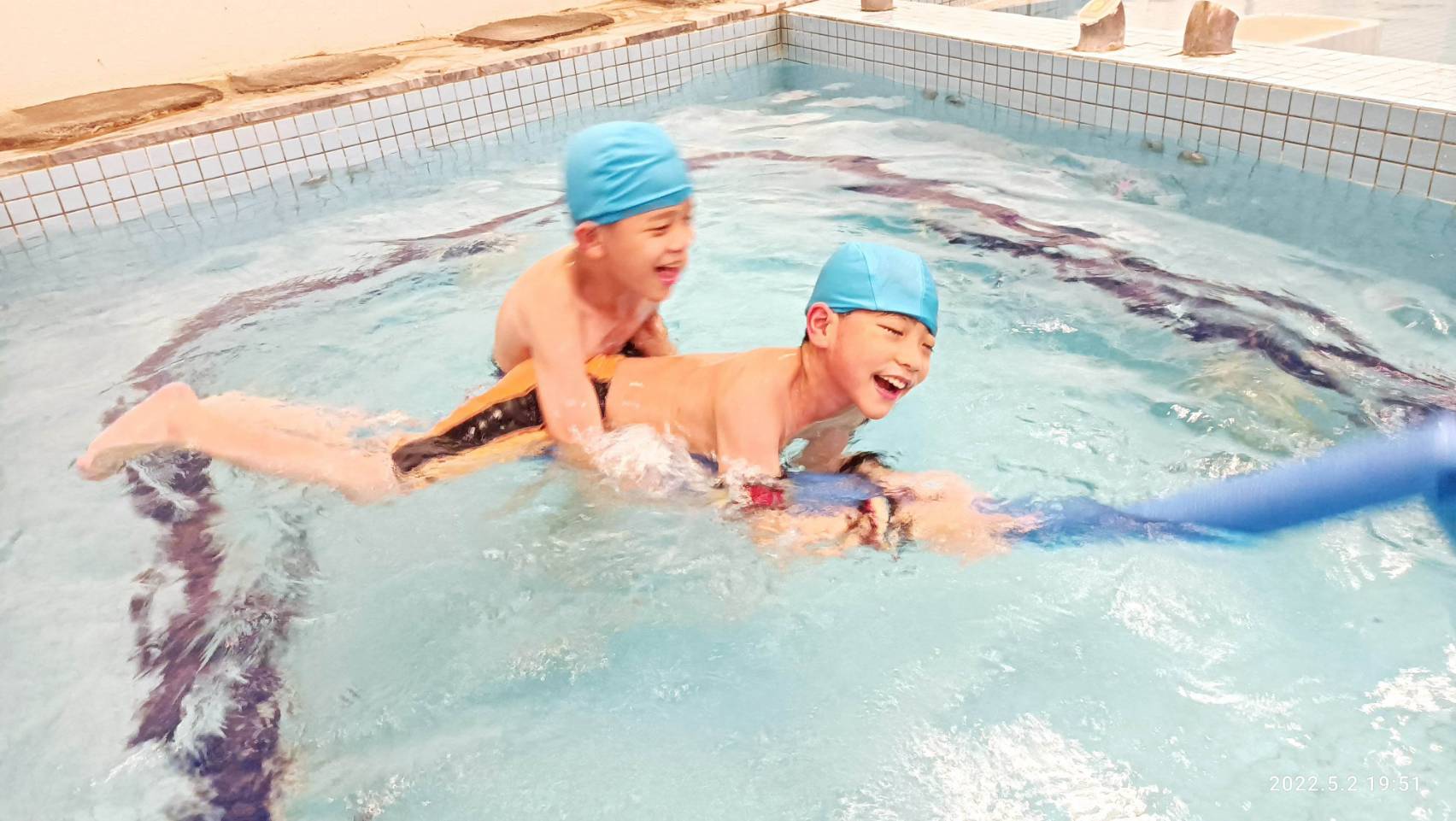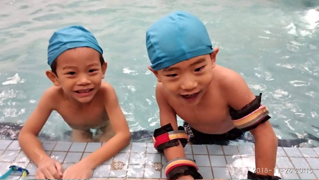 兄弟兩感情非常好,弟弟也會陪著泉泉一起游泳。
