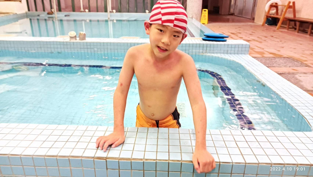 從起初的緊張到現在的悠遊自在,泉泉已能在水中做隻快樂的小飛魚。
