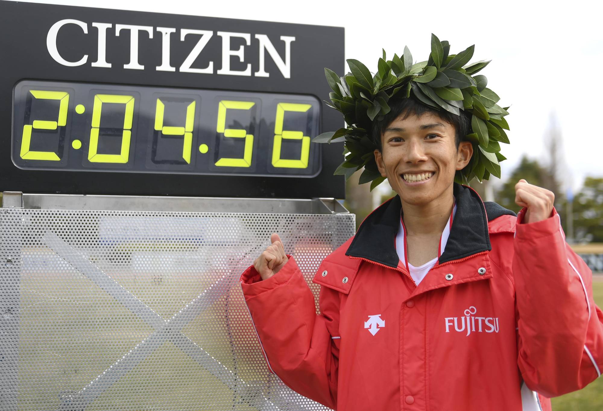 川内優輝在 2022 年的黃金海岸馬拉松中即便腿不適他也堅持完賽。圖/Sport Elite運動王者