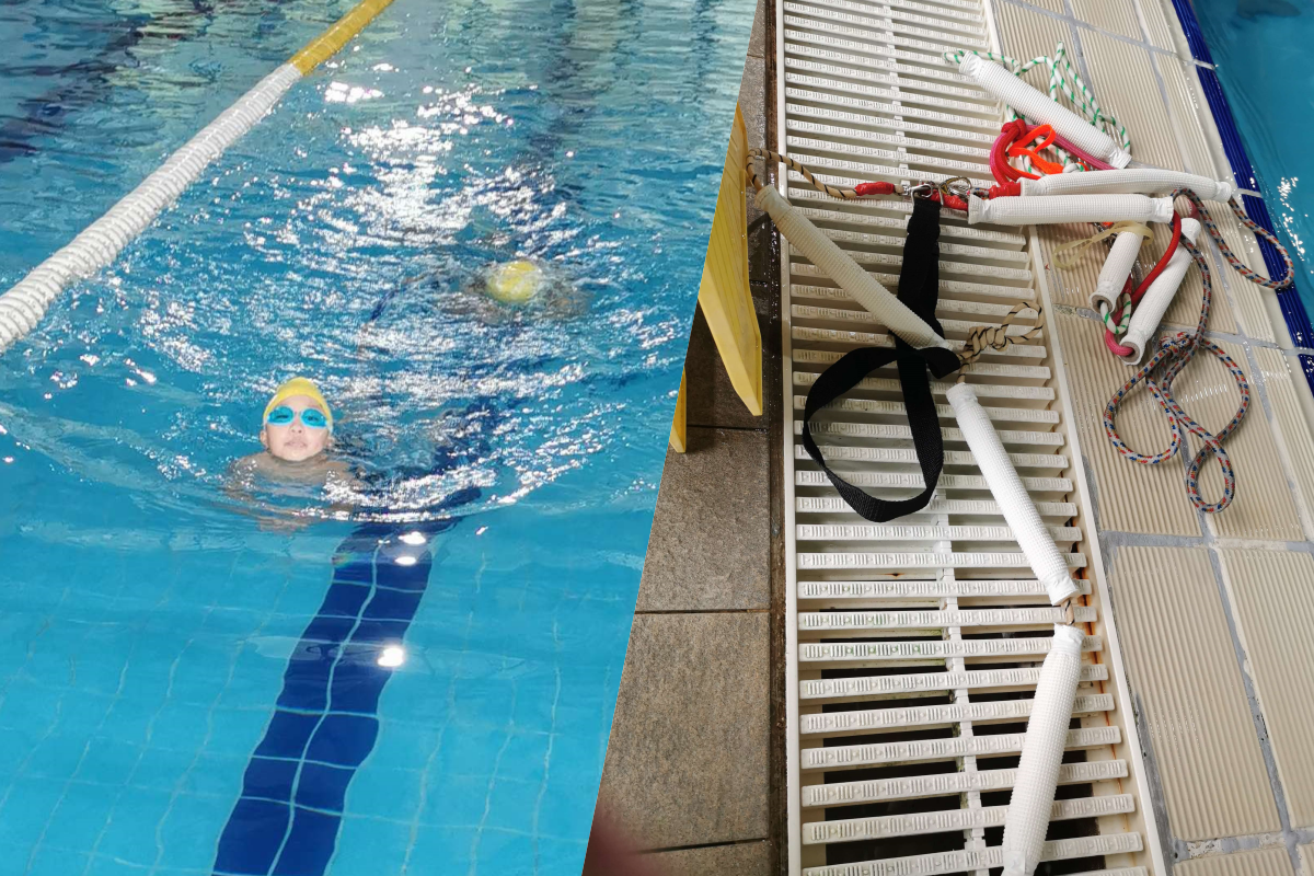 陪泳繩需拿捏視障選手與陪游員的身形以及不同泳式的差異。(圖/謝詠絮副教授提供)