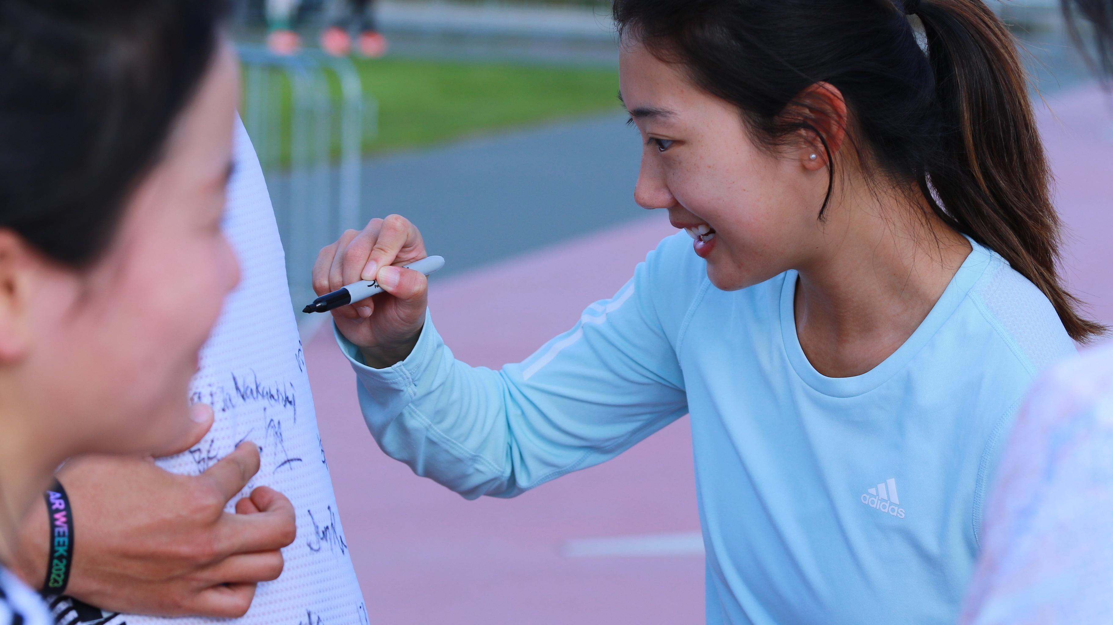 羅映潮 幫來自香港的 AR 跑者簽名,展現親民的一面。圖/Ian