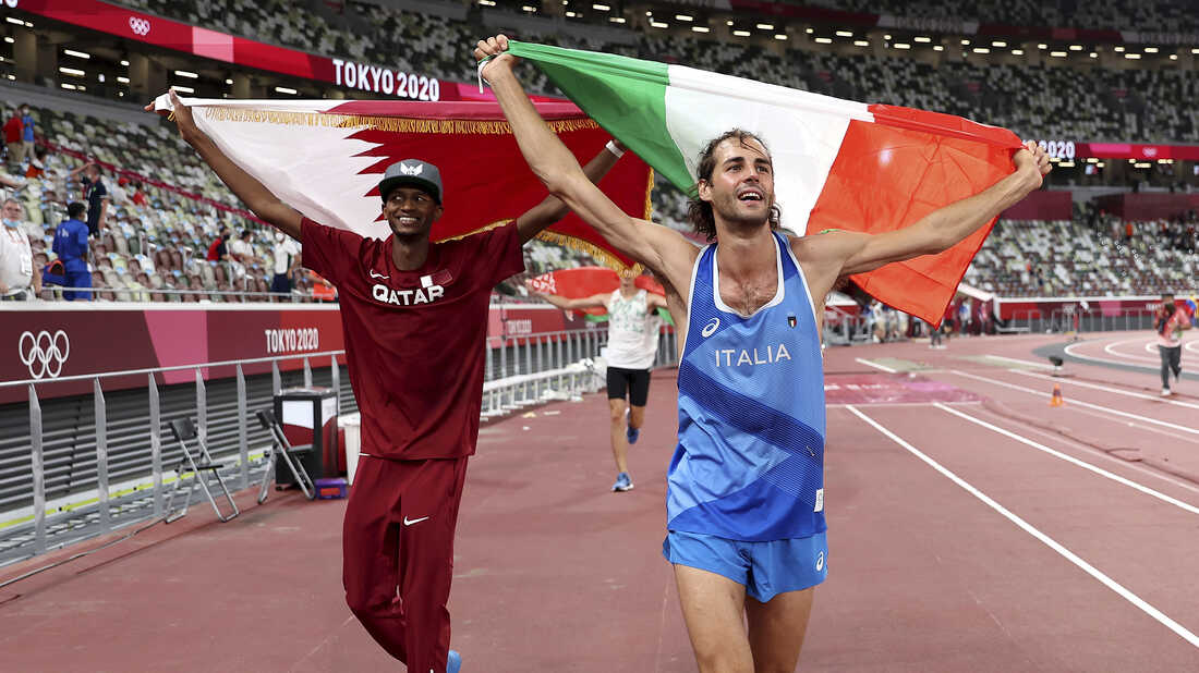 |東京奧運時卡達的 Mutaz Essa Barshim 和義大利的 Gianmarco Tamberi 共享金牌