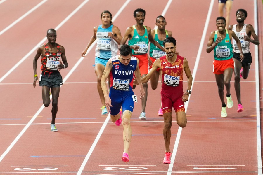 在 3 公里後第一集團不斷加速,以 61-63 秒完成隨後幾圈,在 4 公里時第集團仍有超過十人,在最後一圈鈴聲響起 Jakob Ingebrigtsen、Mohammed Katir、Jimmy Gressier 等的歐洲選手與非洲選手全力拼最後衝刺,最後 200 多公尺 Mohamed Katir 成為領跑者並以非常流暢的跑姿高速前進,此時 Jakob 只處在第四名,當人們以為他不行時,他慢慢的爬到第二位,在最後 100 公尺看似重演 1500 公尺的一幕,但這次卻是 Jakob 一步一步壓迫 Katir,在終點前 20-30 公尺反超 Katir,以 13 分 11 秒 30 拿下本屆世錦賽首面金牌、扳回一城,Mohamed Katir 以 0.14 秒之差「銀恨」,肯亞的 Jcob Krop 以 13 分 12 秒 28 獲得第三,瓜地馬拉的 Luis Grijalva 獲得第四。