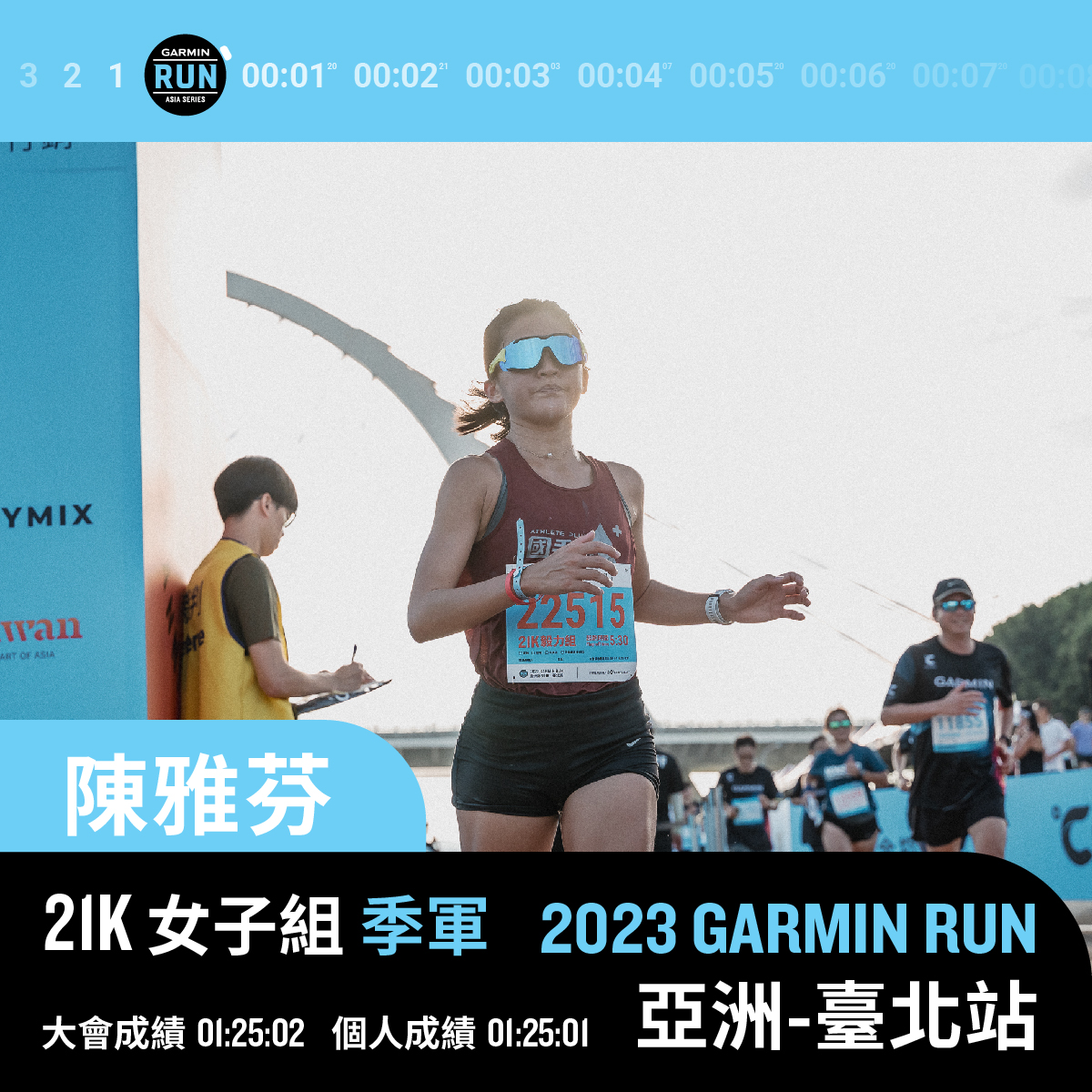 萌少女陳雅芬以 1:25:02 排名第三。圖/Garmin Run Club Taiwan