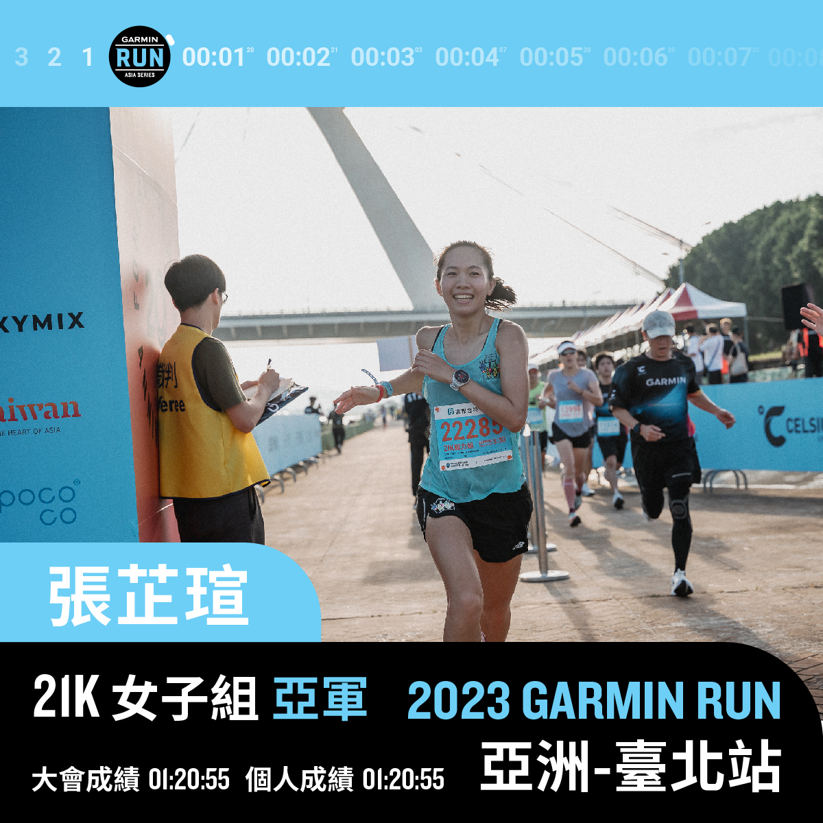 長跑甜心張芷瑄 以 1:20:55 奪銀。圖/Garmin Run Club Taiwan