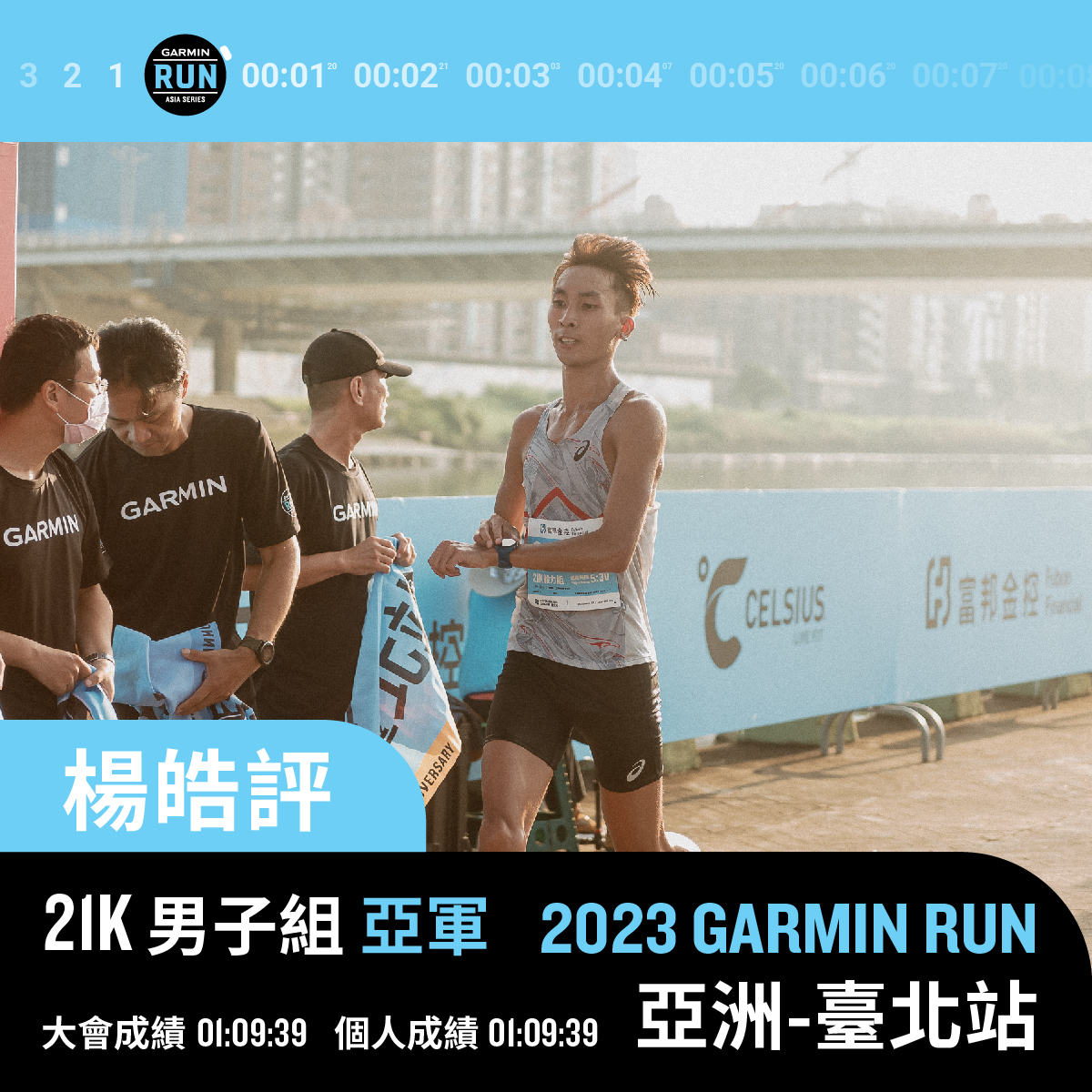 楊皓評以 1:09:39 摘銀。圖/Garmin Run Club Taiwan
