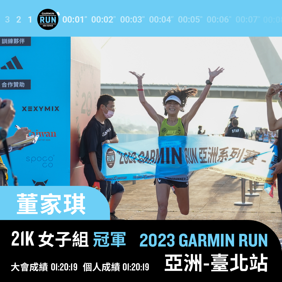 半馬女子組董家琪以 1:20:19 摘下后冠。圖/Garmin Run Club Taiwan