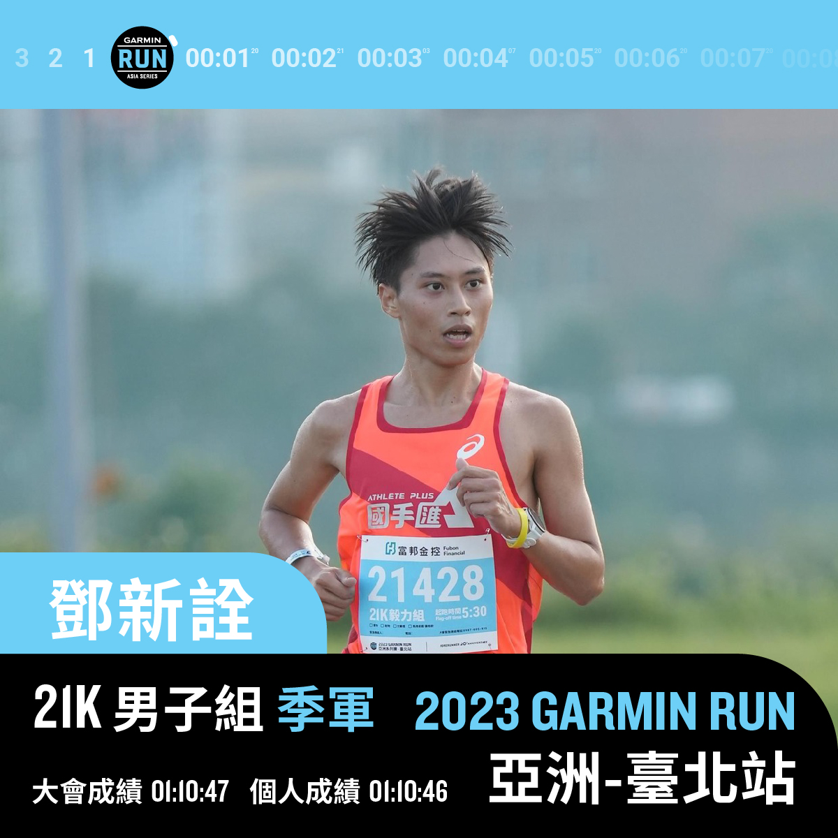鄧新詮以 1:10:47 奪銅。圖/Garmin Run Club Taiwan