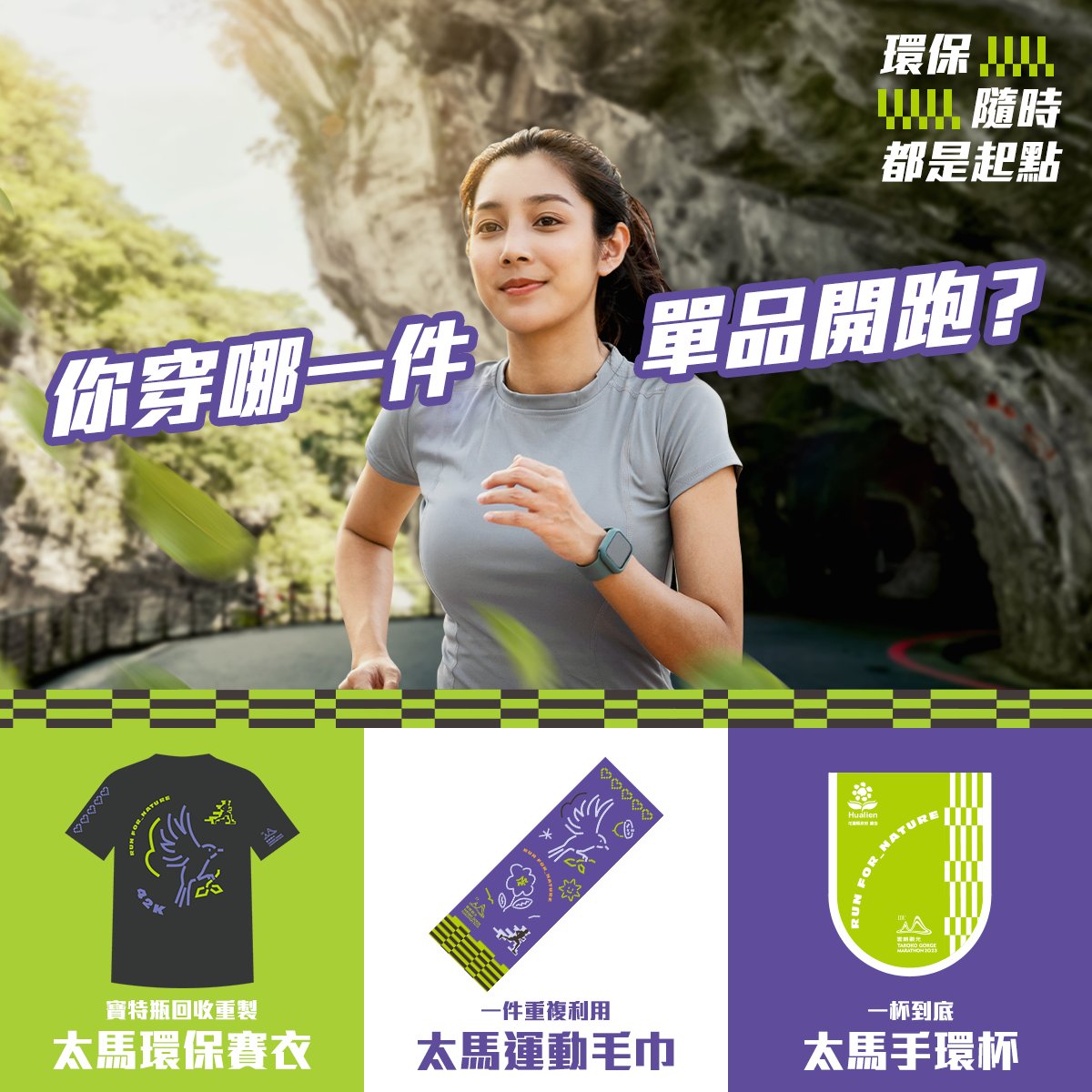 台灣唯一舉辦在國家公園內的花蓮太魯閣馬拉松,結合在地人文特色,將相關印象傳遞在賽衣、活動辦理核心,並且結合時下最新科技使用回收再製寶特瓶賽衣、環保手環杯、環保獎牌、電子完賽證書等,更是邀請跑友從家裡拿出還能穿著的鞋子捐贈至非洲,永續不僅限於只有參加賽事的人,也能透過跑鞋捐贈活動,讓家裡成員都有機會落實執行。