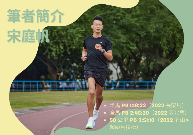 大家好,我是宋庭帆,從 2016 年完成初馬開始算,至今跑齡約七年,今年的目標賽事是年底即將到來的臺北馬,在備賽期間的月跑量約 300~400 公里。