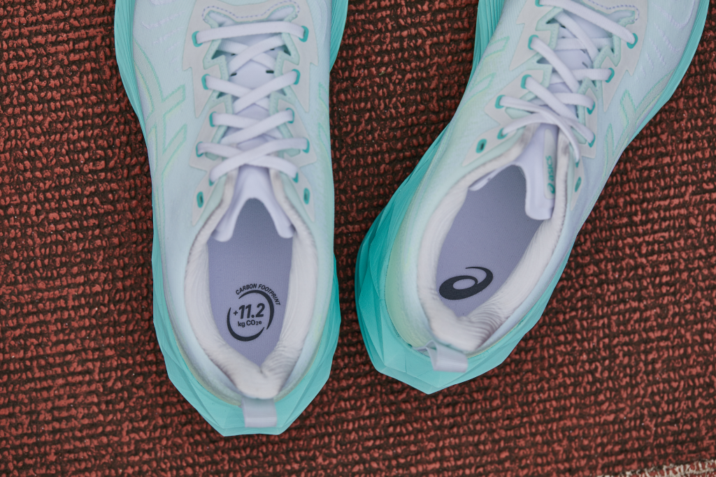 中底使用新的 FF BLAST+ ECO 科技中底,注入環保精神,其中 20% 採用天然再生材質製成,碳足跡更是低於市場平均 23%,是 ASICS 第一雙具有碳足跡標籤的彈力系列鞋款。
