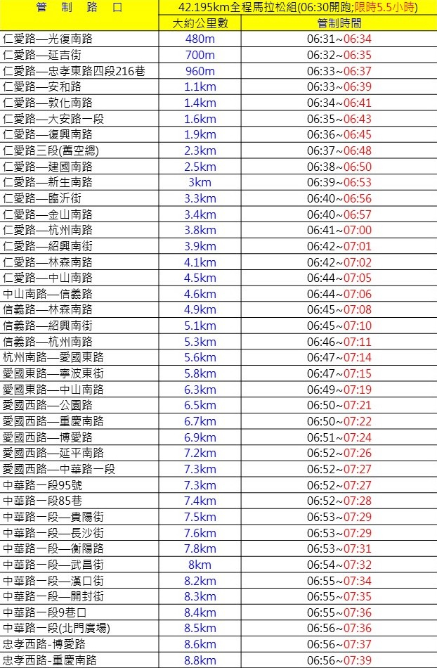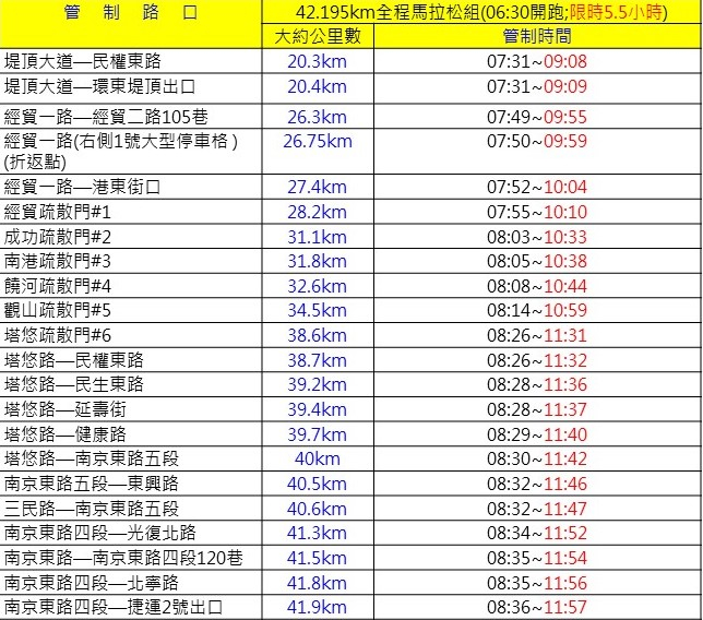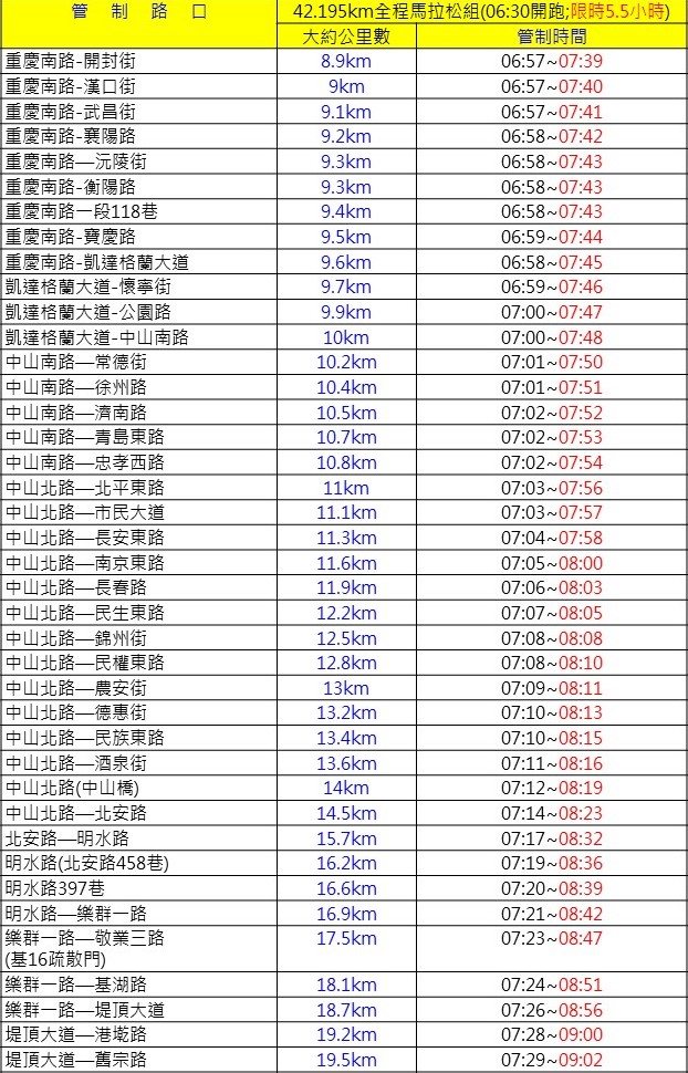 以上是全馬賽道的重點介紹,今年依舊限時 5 小時 30 分鐘,還請跑者注意每個路口的關門時間,不要被關門囉~