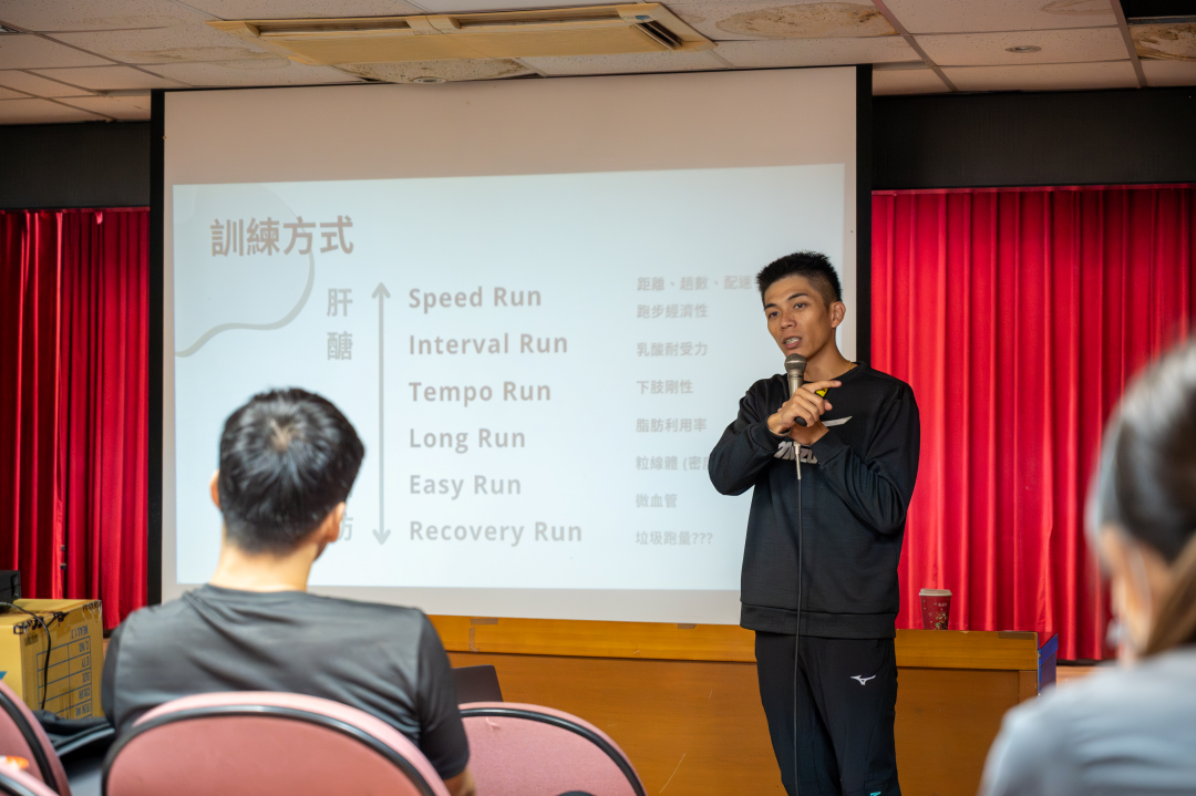 進入下半場的室內課程分享時,許多學員都直觀地認為「跑快才有練到啊!」然而教練則解釋,對於長距離賽事來說「慢得下來才有辦法跑快」,主要是在說明馬拉松訓練需要不同等級的強度來相互搭配,進而達到訓練成效,例如當 Long Run 或 Easy Run 時,速度就不能達到馬拉松配速或 Tempo Run 的強度,所謂該慢就慢;相對的進入 Speed Run 就需要開到教練指定的強度配速,則是該快就快,透過快慢相呼應來強化乳酸耐受力及代謝乳酸的能力。