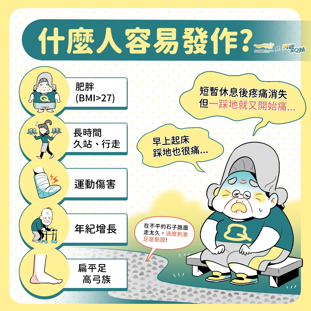 得到足底筋膜炎的人,通常會有以下的危險因子: