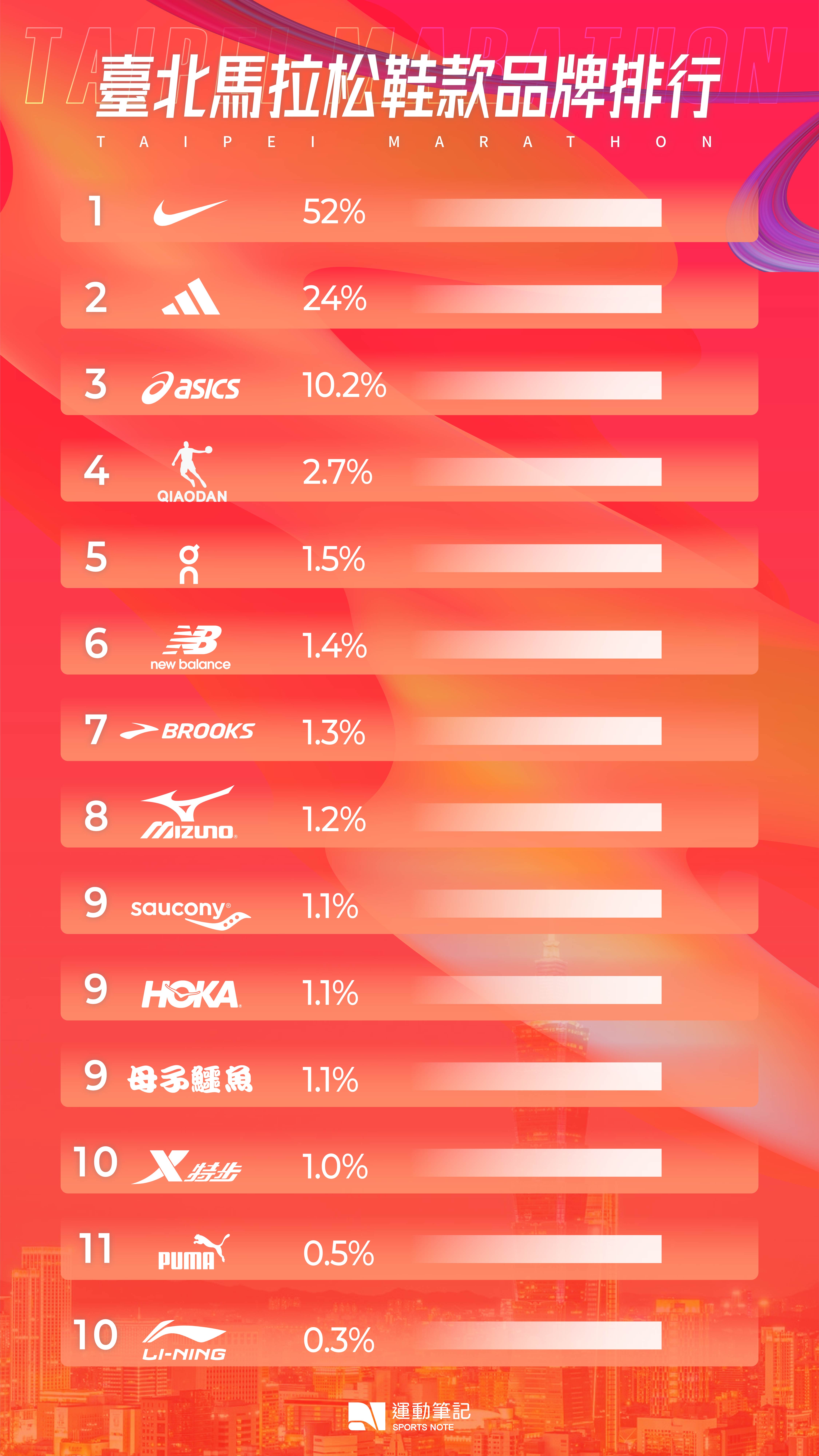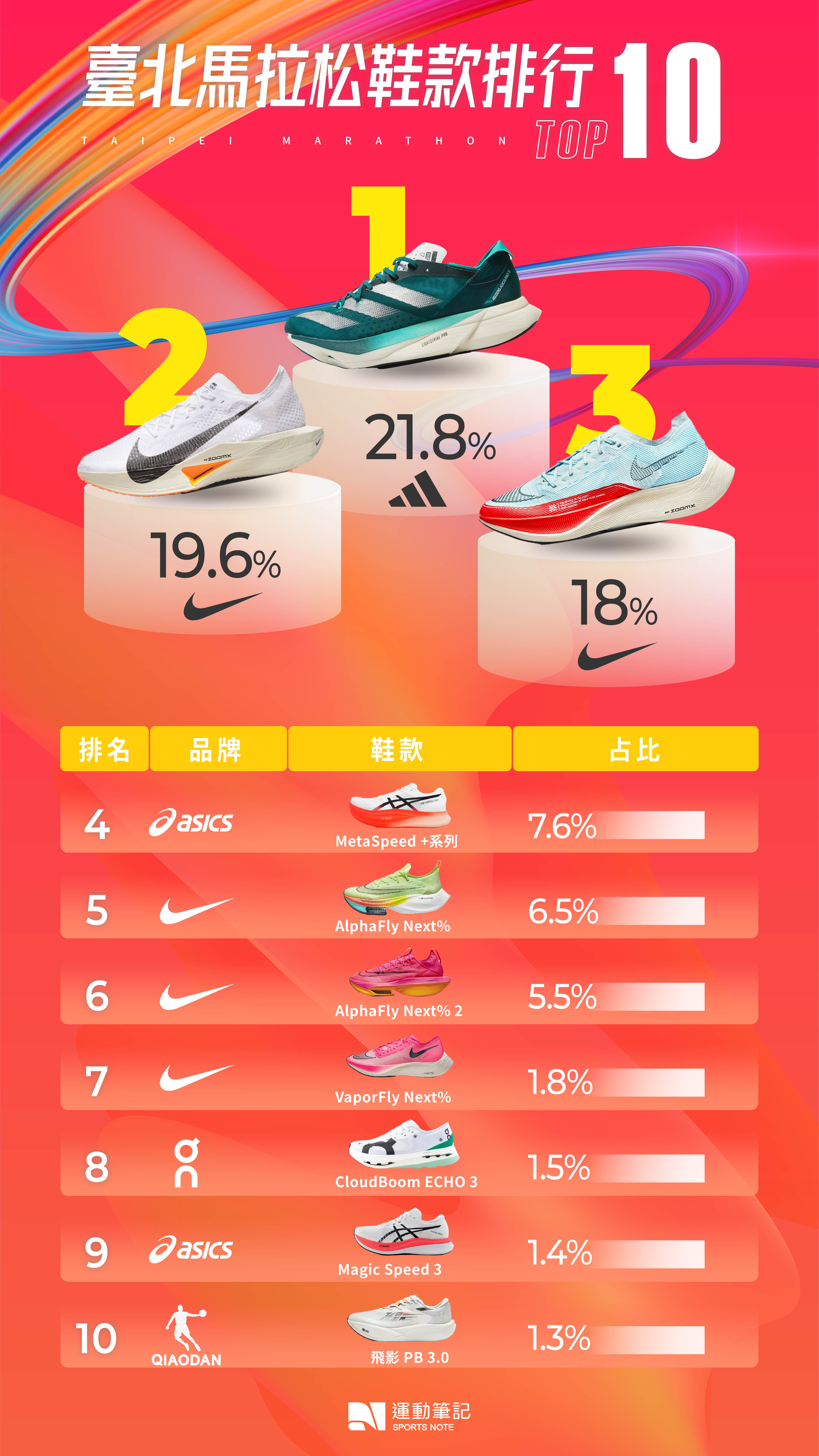 【跑鞋研究室】(更新)2023 臺北馬拉松 Top1000!NIKE 蟬聯冠軍 一趨勢值得注意!