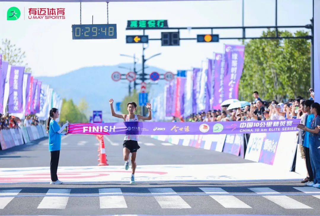 王文杰出戰中國 10 公里菁英賽-南京.溧水站以 29 分 47 秒的成績奪冠,創下 2023 年年度賽會紀錄。圖/馬拉松跑步