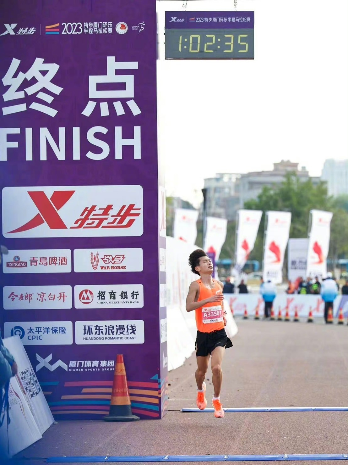 第二次跑半馬的王文杰廈門環東半馬賽以 1:02:34 的成績拿下中國半馬冠軍,僅差中國紀錄 4 秒。圖/98跑