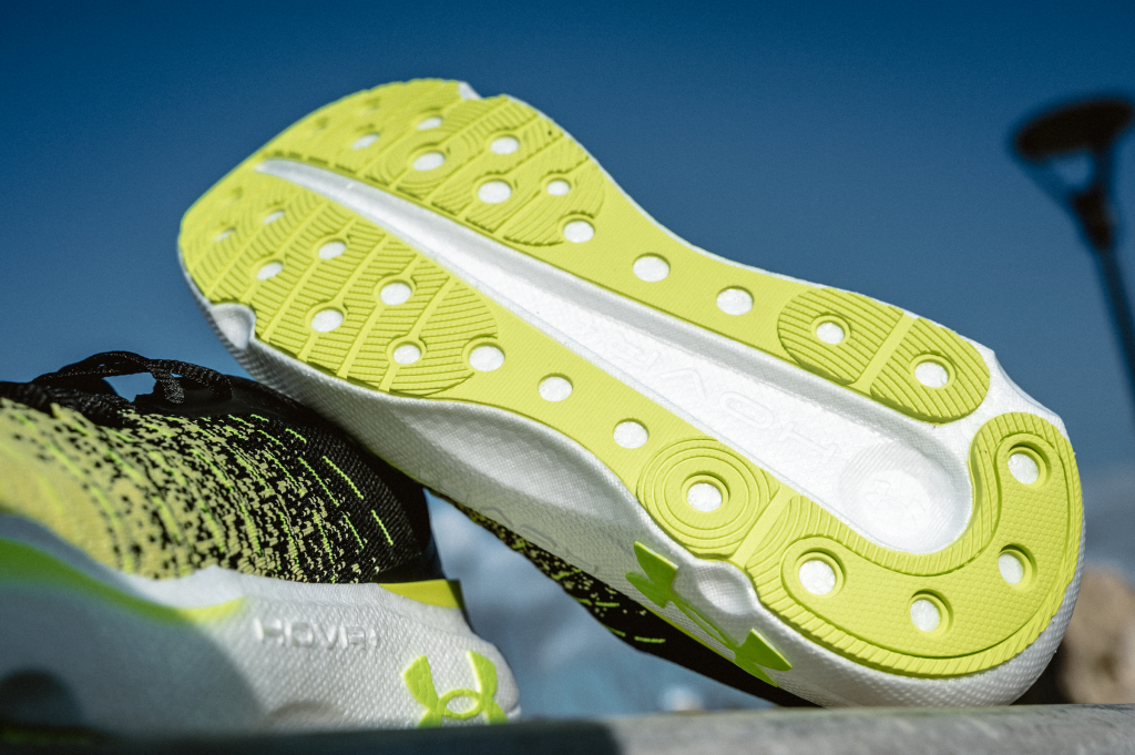 UA HOVR+ INFINITE ELITE 配備的 Thinweb 橡膠大底,除了維持耐用性及摩擦性,也同步減輕傳統外底的重量,更加輕盈,搭配底部深度彎曲槽設計,提供良好的抓地力及穩定性,尤其在進行長距離訓練時,讓我們可以更靈活、更有信心的在不同場地進行動態訓練。