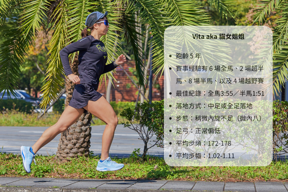 大家好,我是 Vita aka 貓女姐姐。在 2022 年下半年首次完成初鐵,再加上不小心踏入越野界後,人生開啟了另一片天地;但去年因工作及身體狀況,導致我的訓練量急遽降低甚至為零,即使尋遍各種醫生卻仍然找不到問題,讓我陷入到低潮期,甚至最後放棄臺北馬賽事。幸好在去年有與運動筆記列車長書豪合作架設了「喵喵問個痛」配速計算機網站,讓我能以不同的形式陪著跑友們也是達成自己一段美好的成就。