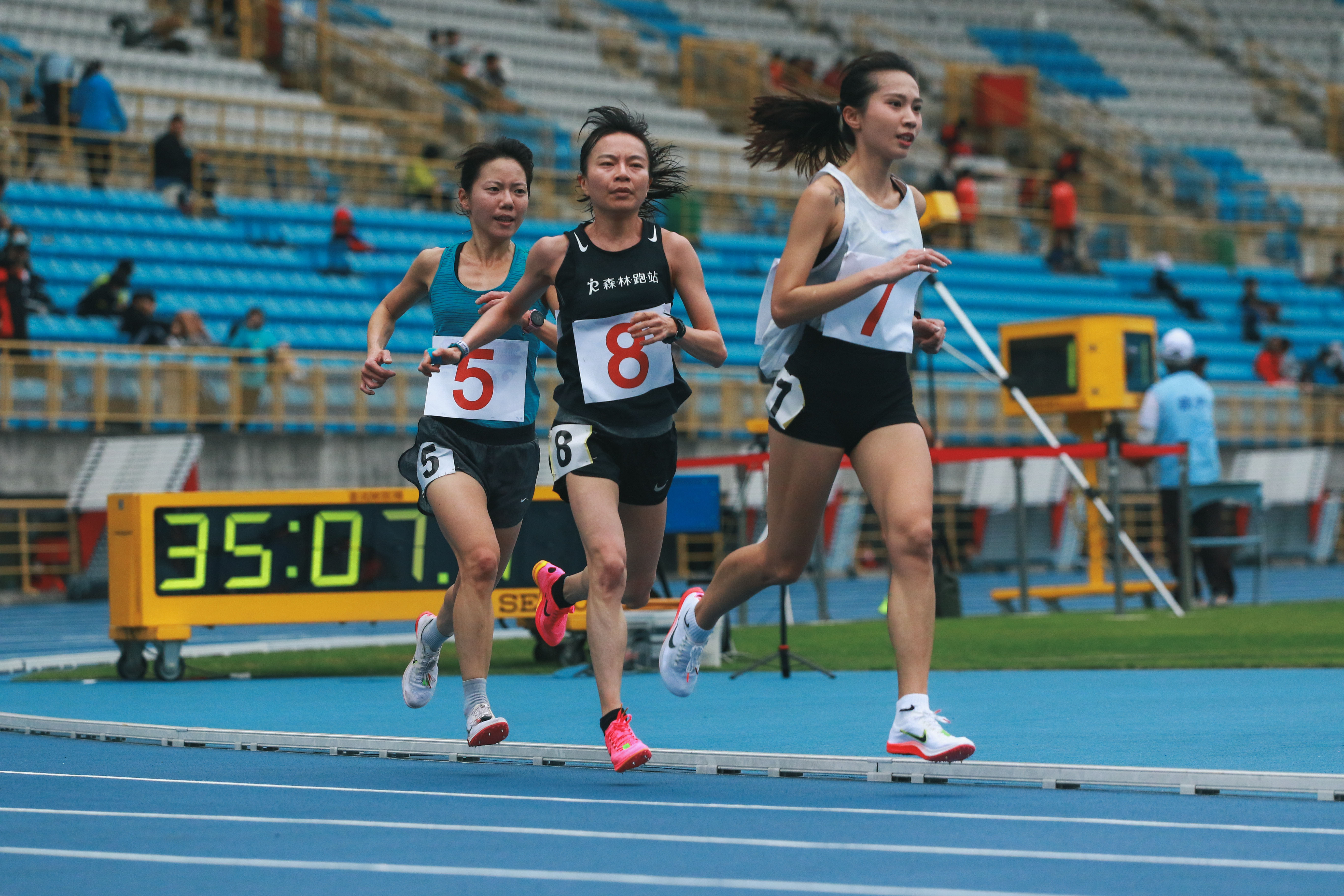 陳美彤、李佳玫、余亭緣 三位選手咬著配速,試圖衝擊 37 分台。圖/Ian