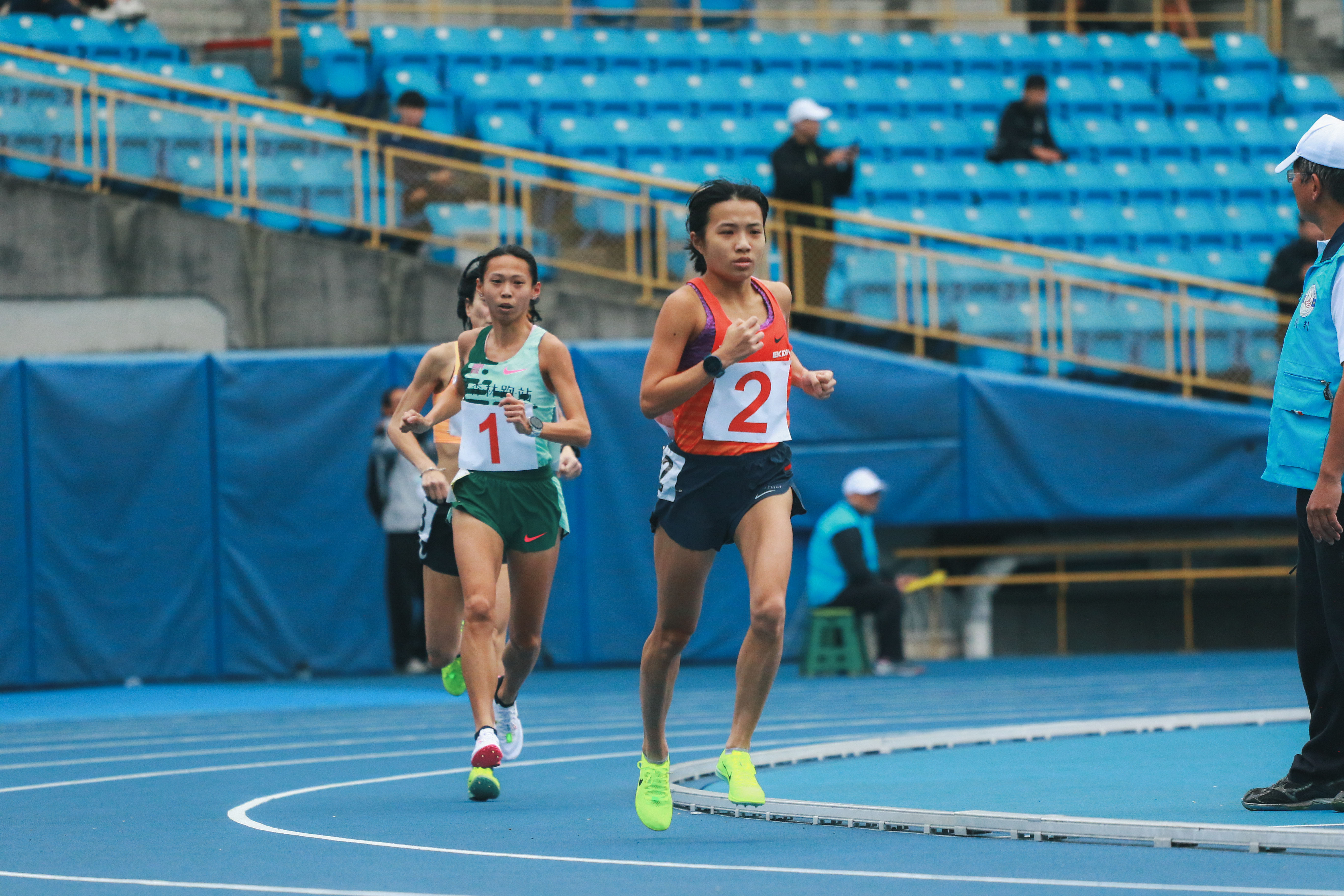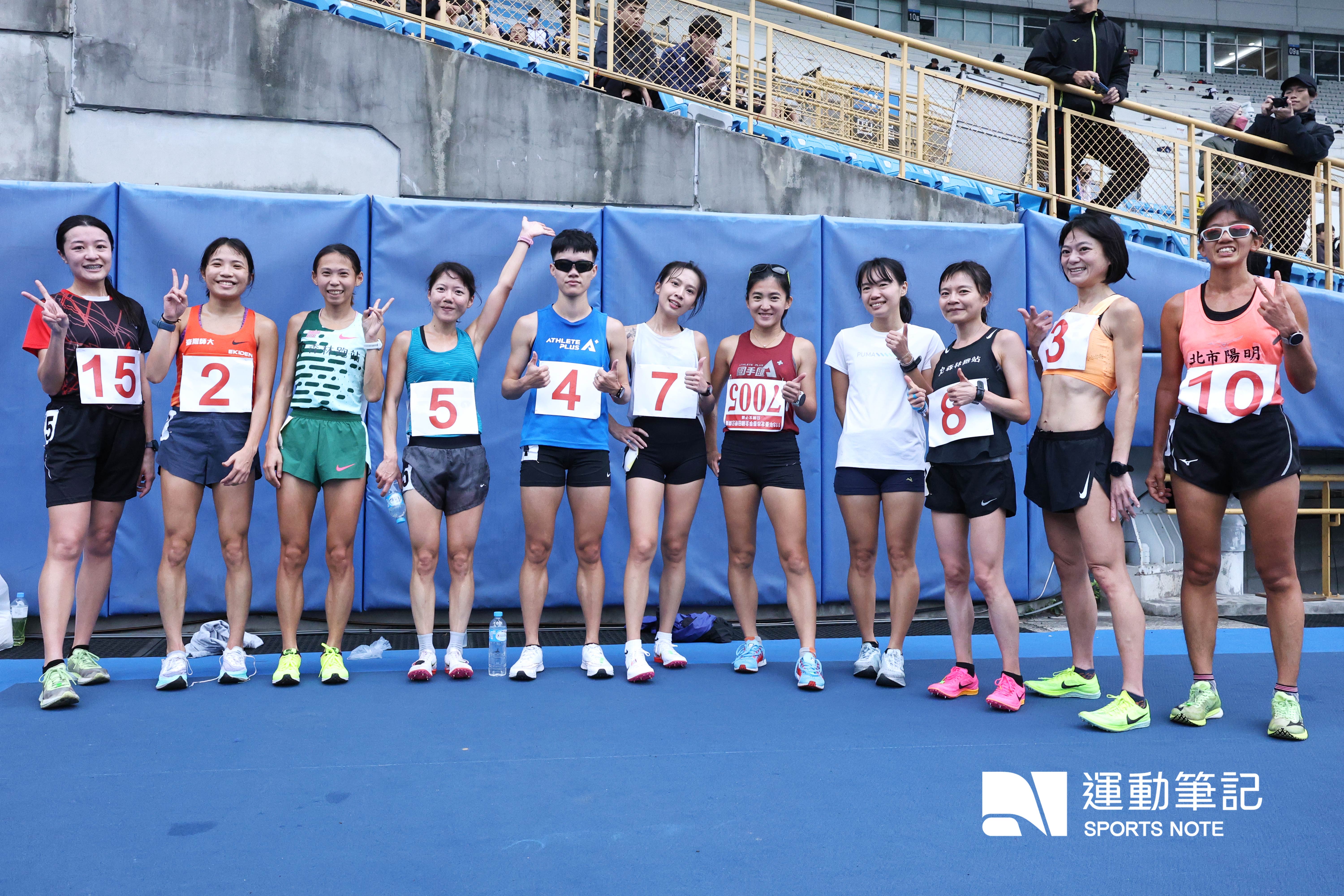 113 台北市春季盃田徑賽來到進入第二天的賽程,今早(2/2)迎來的是公開女子組一萬公尺決賽,本場比賽則吸引了 13 位女子好手前來,其中包括「馬拉松寶貝」曹純玉、2023 臺北馬國內女子冠軍「苗栗天后」陳逸寧、湯樂榆、「女子三千障礙紀錄保持者」陳昭郡、「腳闆娘」陳美彤、朱盈穎及剛結束亞洲馬拉松錦標賽的「萌少女」陳雅芬等好手,另外「董老師」董家琪 也首度現身在田徑賽場中。