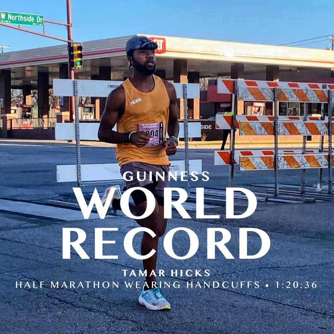 一位來自美國德克薩斯州的藥劑師叫做 Tamar Hicks,而他正在戴著手銬挑戰半程馬拉松,你可別誤會!他並不是一位逃犯;最終 Tamar Hicks 以 1 小時 20 分 36 秒的成績完成了比賽,創下了戴手銬最快半程馬拉松的金氏世界紀錄(Guinness World Records)。