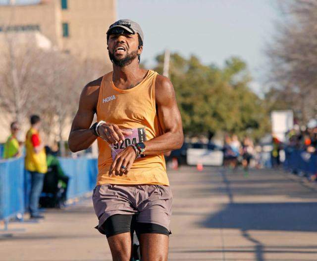 Almost 23,000 people from 14 countries are running in this weekend's @thecowtown in Fort Worth, TX. That includes Dr. TaMar Hicks, who's trying to break the world record for the fastest half marathon in handcuffs. He says he wanted to set a goal to improve his mental health. pic.twitter.com/FZWpz4I0pL