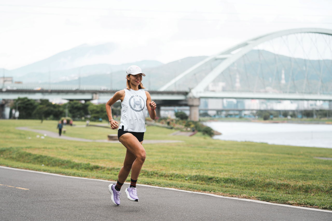 身為超馬選手的秀芳對 HOVR+ INFINITE PRO 的支撐力、包覆感特別有感的。(攝影:Daniel)