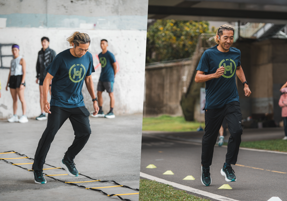 「第一個它包覆性很好,再來是回彈的時候,因為它的支撐度夠,所以腳踝也不會晃動。」戴秀芳也表示特別是在角錐訓練時感受最深刻,「從教練剛剛教的『送髖』,加上中底的回彈,就可以很輕易地把步幅拉大。還有因為跑超馬會遇到很多上下坡,剛剛在上坡體驗的過程中,鞋子帶來的推進感可以讓我有一直往上的感覺。」