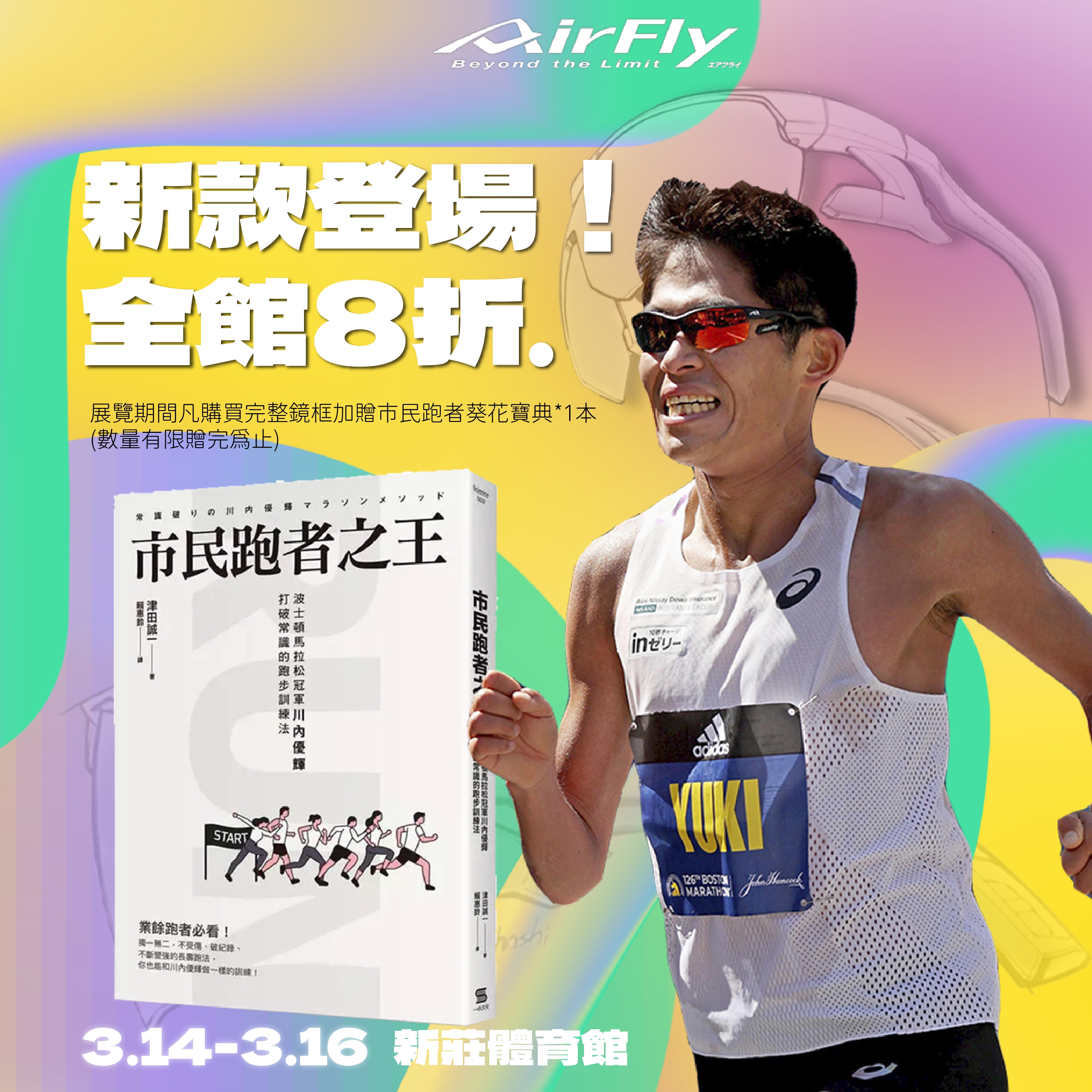 除此之外,更令人振奮的是,現場消費一副眼鏡即贈由王牌教練津田誠親自撰寫的業餘跑者葵花寶典,伴你一起提升心理素質、突破跑速,川內優輝的波士頓馬拉松冠軍之道一一呈現。「市民跑者之王」如同 AIRFLY 將帶你突破跑步的常規,實現更高的訓練境界。
