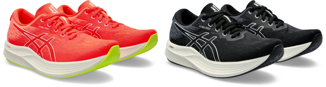 ASICS EVORIDE SPEED 2 本次在男、女款都推出兩款顏色(旭日紅/黑色)。購買連結