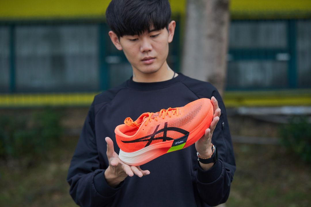 將歸屬感視為動力之一的他,兩年前加入 ASICS 這個大家族,並對品牌擁有堅實田徑選手陣容,及其對跑步運動深度的投入和熱忱留下了深刻的第一印象。也是因為這樣的機緣,讓持續追求突破的鴻宇穿上專為步幅型菁英跑者而生的 METASPEED SKY,從第一代開始,鴻宇親「腳」見證鞋款進化,這次更有機會搶先體驗專為巴黎奧運設計的進階鞋款,同時也是 ASICS 的旗艦碳板鞋——METASPEED SKY PARIS。