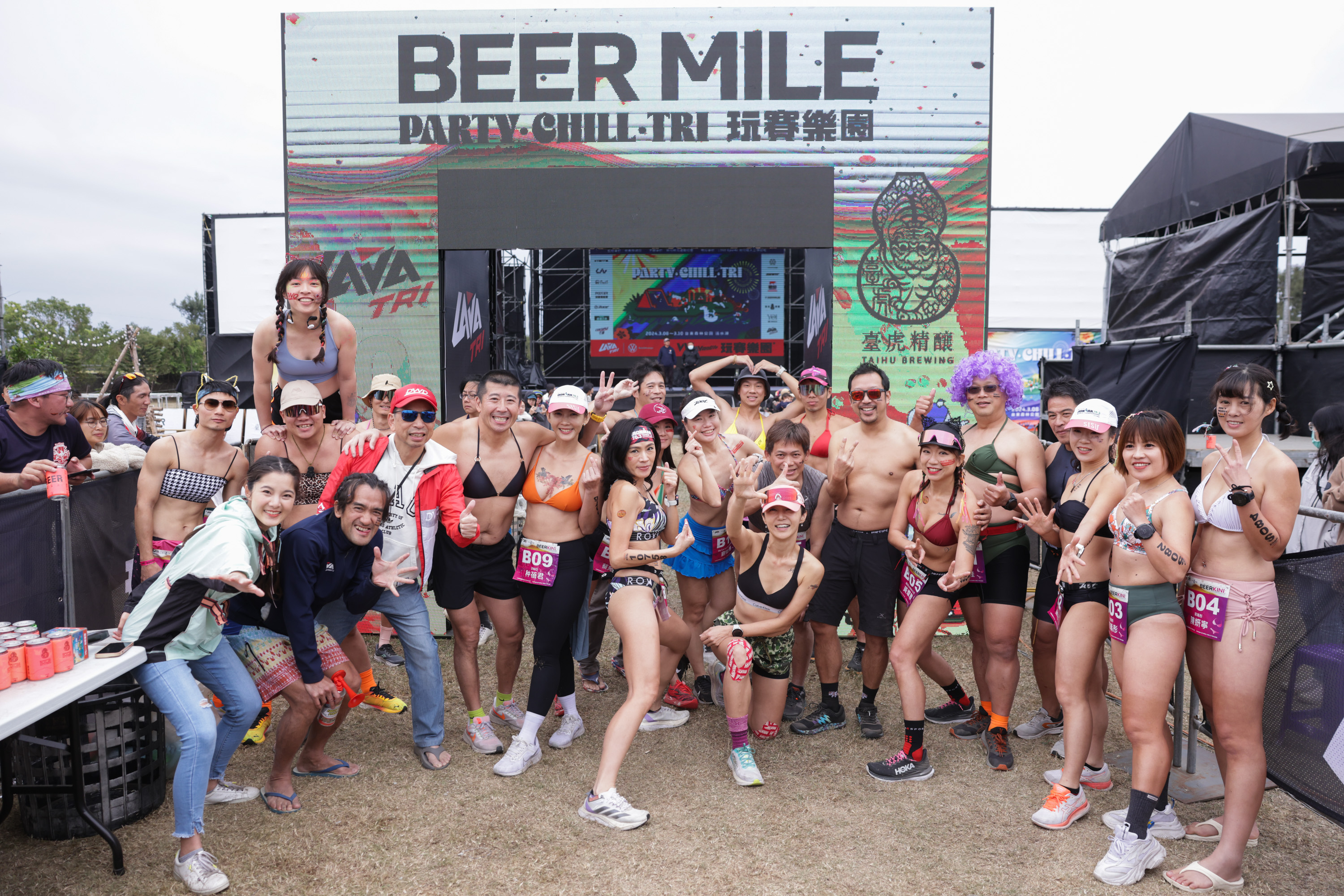 除了週六的鐵人賽,隔天 3/10(日)舉行「2024 LAVA TRI 玩賽樂園- 臺虎 Beer Mile 啤酒路跑」,以及「Beerkini 比基尼組」。Beer Mile 啤酒路跑由懂玩又懂喝的「臺虎精釀」冠名贊助,提供每人贊精濃度 5%、99 卡路里的生啤酒〈嗨〉,「Beerkini 比基尼組」由 DWD Triathlon 休閒鐵人社團加碼贊助,無論男女穿著比基尼直接獲得 $1000 獎金,現場男性選手竟比女性選手多,現場氣氛嗨到最高點!