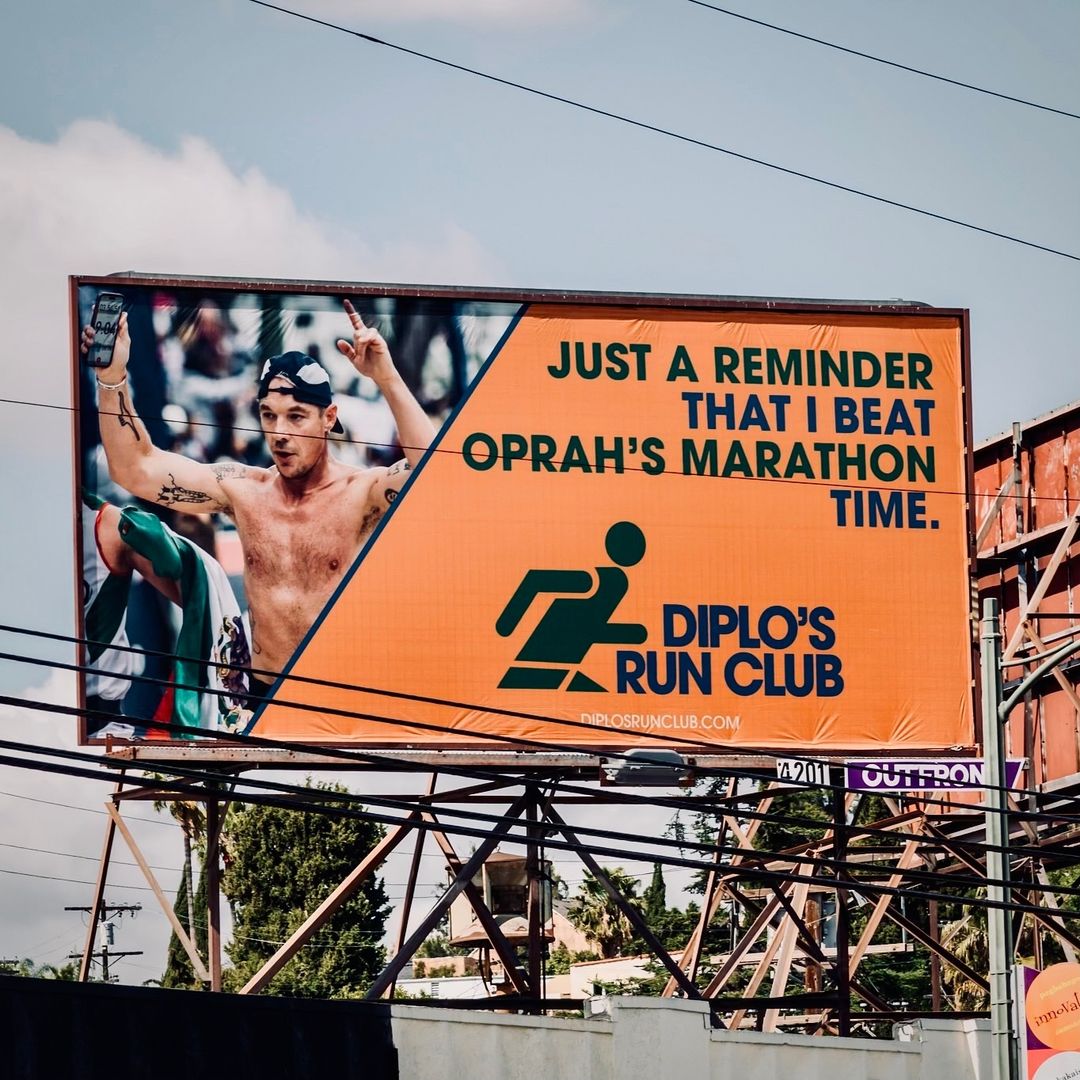 他還租了廣告版位,上頭寫著:「只是提醒一下,我打破了 Oprah 的馬拉松紀錄。」笑死。圖/Diplo's Run Club IG