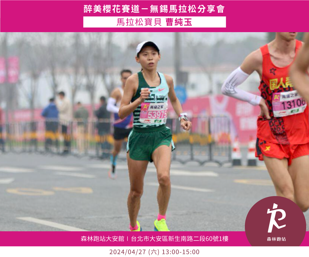 馬拉松並不是累積就會有成果,每一次的跑步都是與自己對話、探索自己的時刻,在比賽、練習探尋每次突破的契機。這次我們「馬拉松寶貝」曹純玉 將要在森林跑站大安館再次與大家一同聊聊備賽期間的甘苦談,及歷經從去年跌落低谷後,如何重新站起的過程;並藉由純玉的視角一窺無錫馬拉松的魅力。