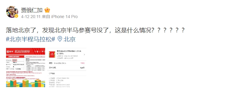 於賽事前才得知取消資格,使賈俄仁加在社群質疑賽會流程。(圖片來源:賈俄仁加微博)