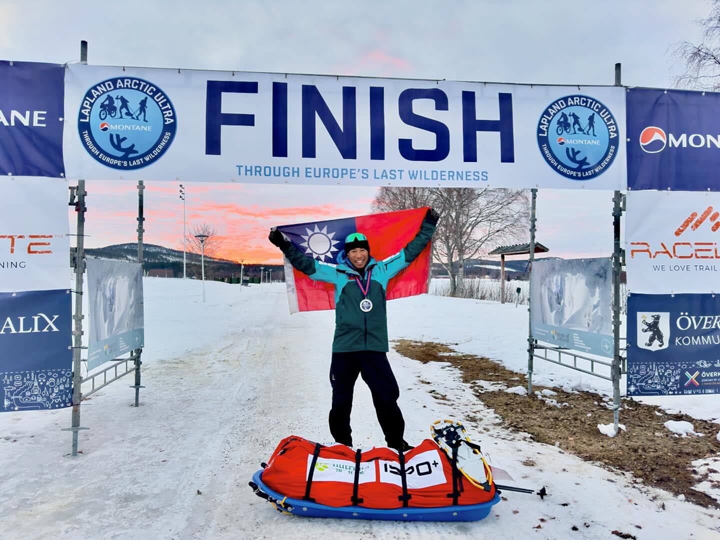 陳彥博在瑞典拉普蘭不休息極地橫越賽,以 6 天 5 小時 48 分鐘,完成全程 503.1 公里,在跑步組參賽者中排名第二,僅次於 54 歲的法國好手 Thierry(5 天 22 小時 39 分)。手握有著麋鹿角圖案、大大寫著 500Km 字樣的完賽獎牌,陳彥博回憶比賽過程中兩度看到極光,仍有著滿滿感動。這項賽事第三年舉辦,今年在 3 月 3 日至 3 月 13 日舉行,限時十天。