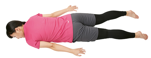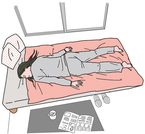 趴在床鋪或被窩上、臉跟手掌朝下,放鬆全身力量。