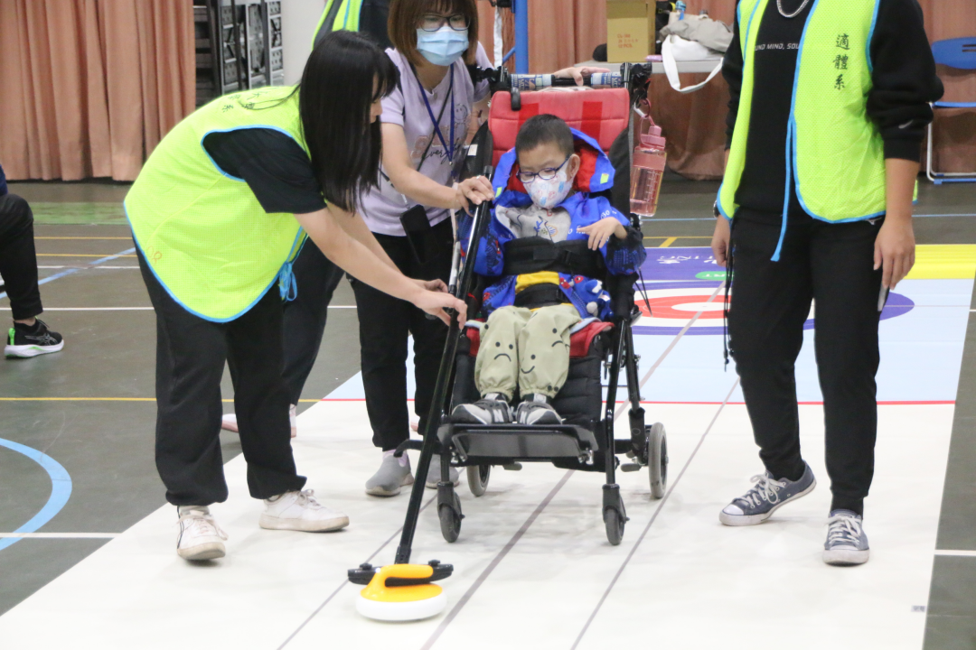 辦理身心障礙者的運動會與系上課程「身障者運動會經營管理」所學相呼應,讓理論轉化為實務。(圖:朱彥穎教授)