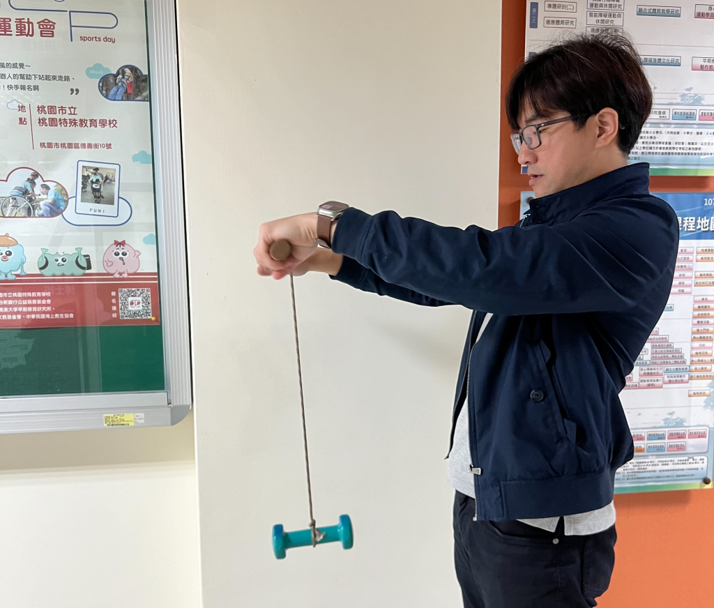 范姜教授自製運動輔具「擀麵棍DIY」可以用來增強腕力,適合對象相當廣泛,無論是身障者、重症者或是年長者都能使用。(圖:范姜昕辰教授)