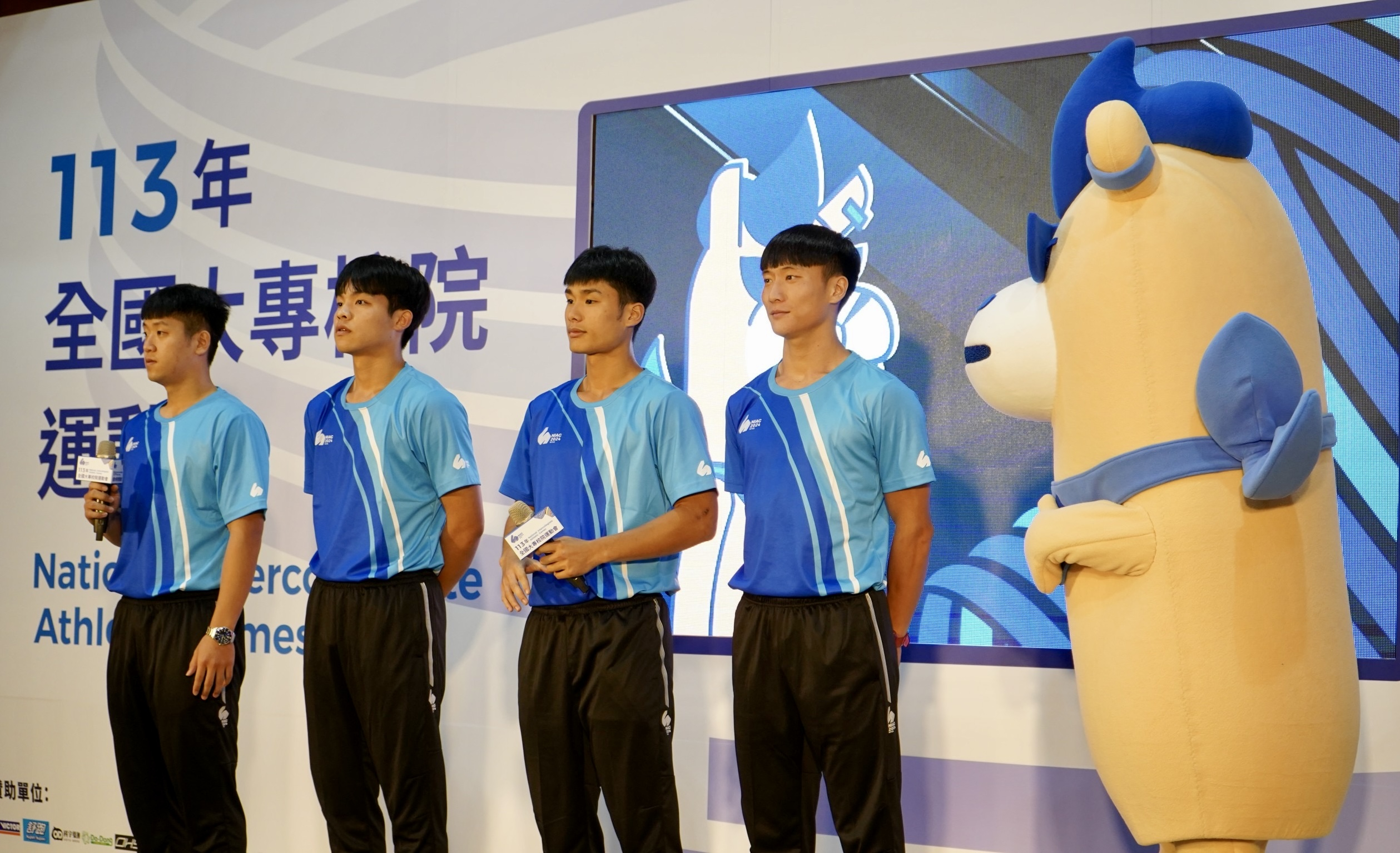 校長許光麃表示,臺體大在去年全大運拿下 78 金 58 銀 71 銅全國第一的成績,今年將朝衛冕的目標邁進。除此之外,也由學校師生結合當今最火紅的 AI 科技設計出全大運首創的虛擬網紅代言人─小藍,一同為全國參賽選手加油打氣。