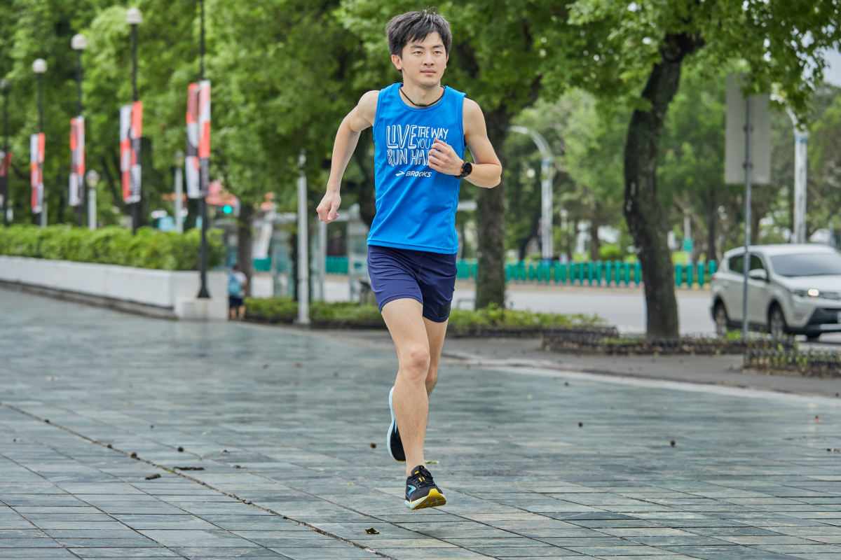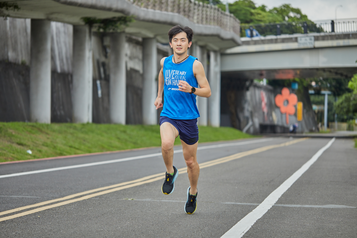 自從今年初受傷後,開始減少對碳板鞋的依賴,將以 BROOKS GHOST 16 備戰下半年的賽事。(攝影:劉曉天)