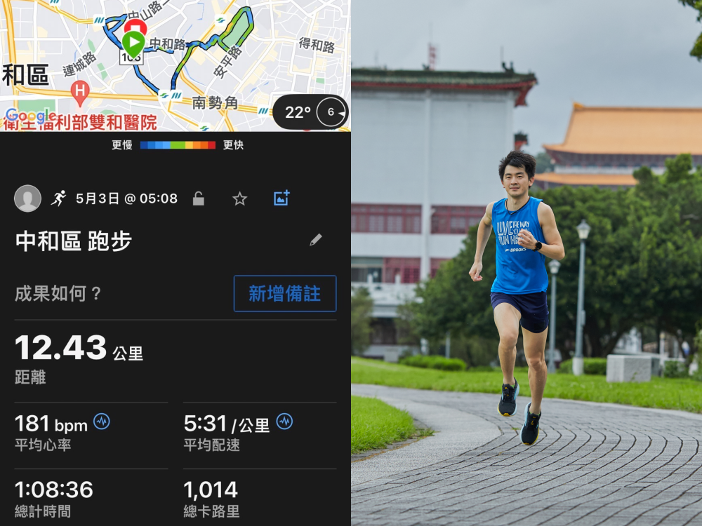 GHOST 16 在柏油路進行長距離訓練,有流暢的步伐轉換體驗,跑起來很舒適。(攝影:劉曉天)