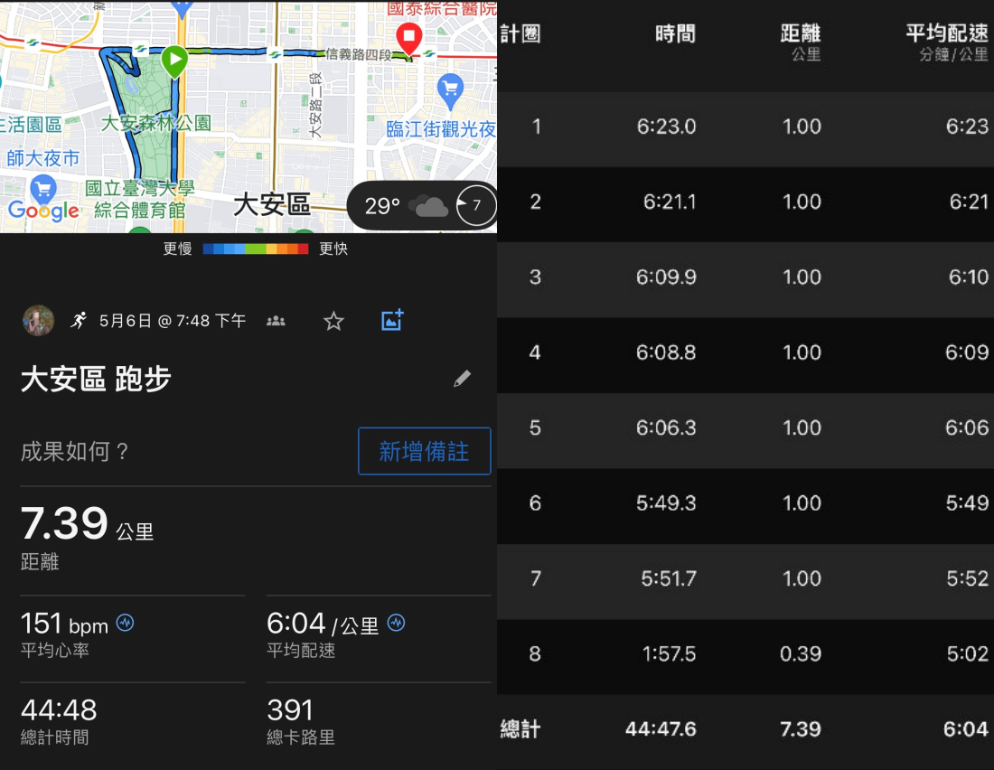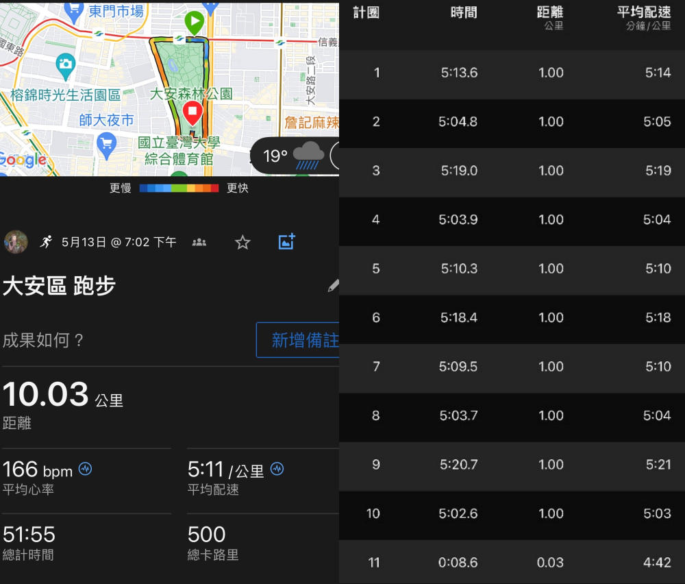 地點在路面豐富的大安森林公園測試,試過紅土跑道、凹凸不平的人行磚道、石磚面、柏油路上下坡。令我很喜歡的地方是,它後跟 TPU 穩定片讓落地時非常穩定,通常晚上有些地方比較看不清楚,不見得可以完全避掉一些凹凸不平的路面及石頭,但穿上 On Cloudrunner 2 後大大減少落地不穩、腳踝拐一下的情況發生。