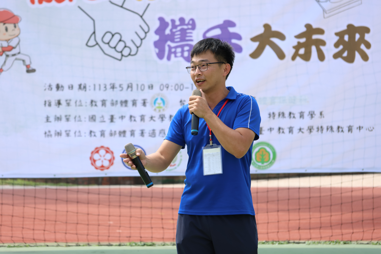 當天氣候雖有些炎熱,但仍不減小朋友們的熱情;而活動開始前更邀請到了臺中教育大學教育學院李炳昭院長、臺中市教育局體育保健科李有峻股長、臺中教育大學特殊教育學系洪榮照教授、臺灣體育運動大學師資培育中心鄧鈞文主任等多位嘉賓一起共襄盛舉,為本次活動揭開序幕。