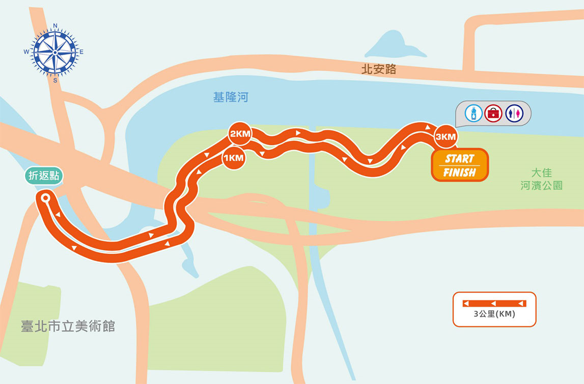 3 公里健跑組、3 公里健走組路線圖。(圖片來源:三得利健益)