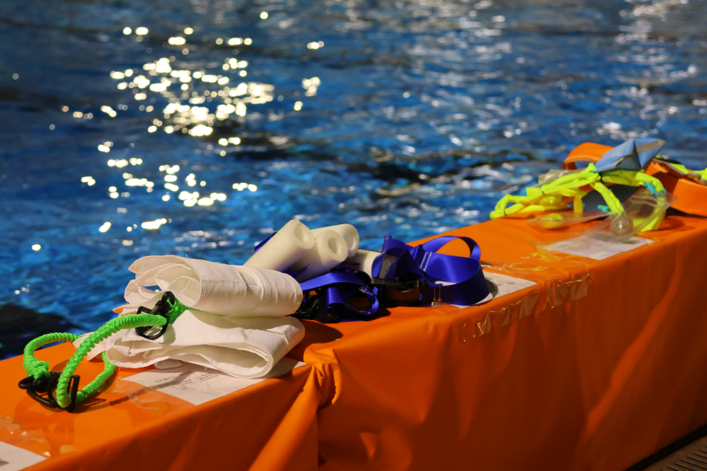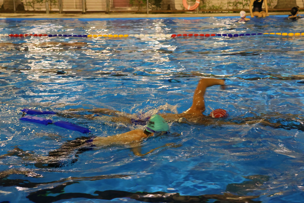 泳池旁滿滿的陪泳/跑帶,結合學生們親身體驗所設計的成果。(圖|Trista)